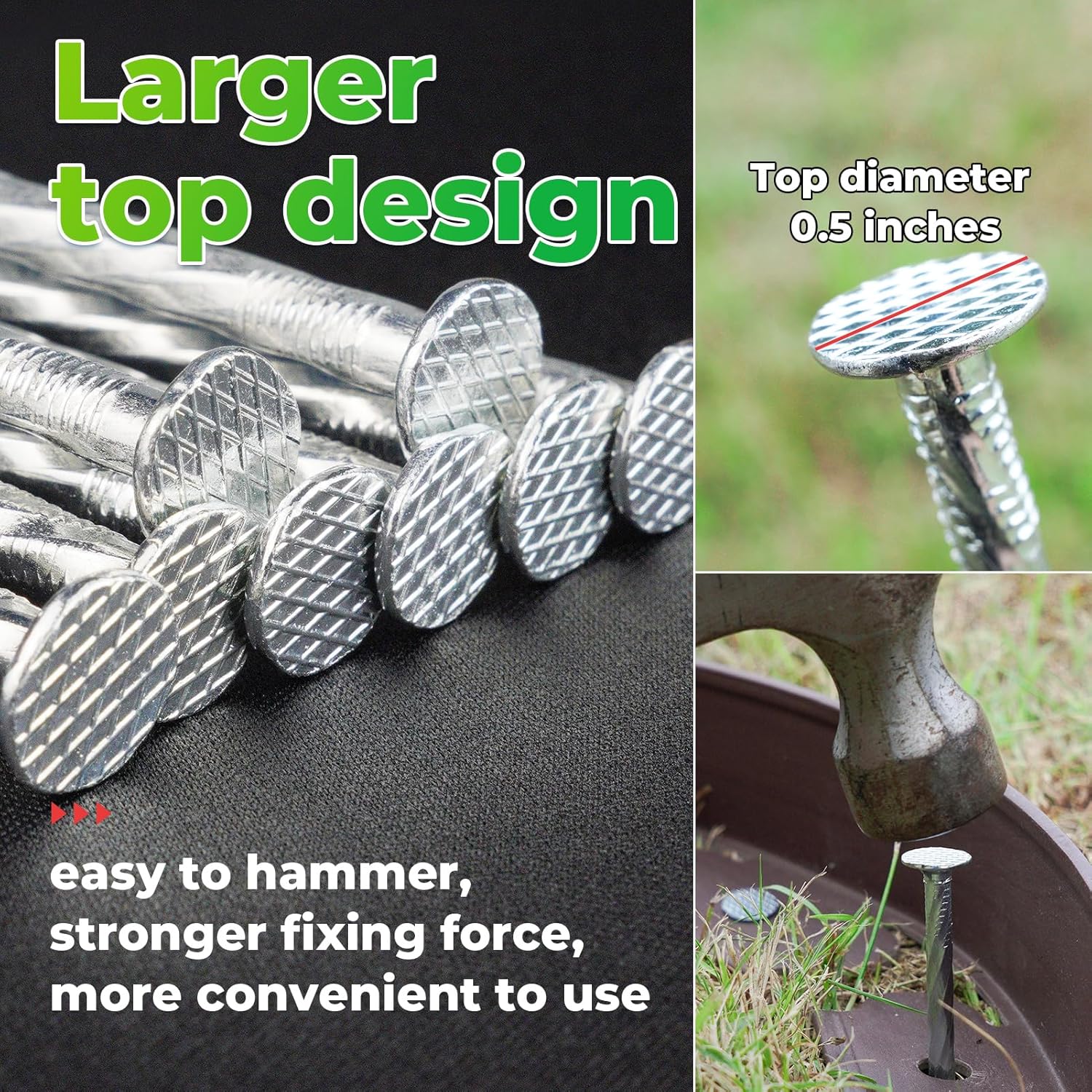 - 【Multipurpose】 Heavy duty garden stakes for fixing landscape edging, weed barrier fabrics, artificial lawns, tents, traps, carpets; It can also be used for carpentry, housing construction, etc