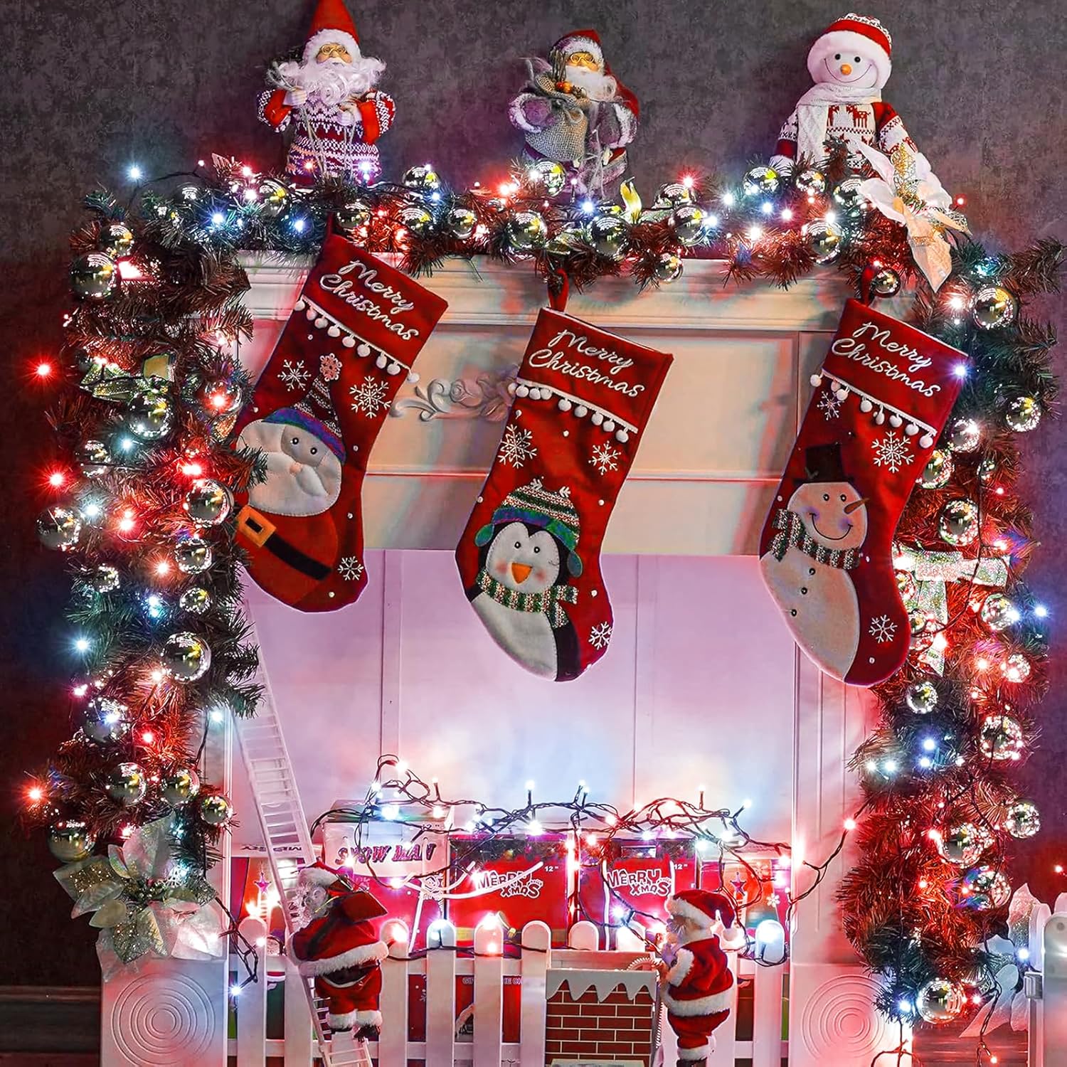 - 8 Lighting Modes: This red white Christmas lights has 8 lighting modes to fit different occasion and mood needs, including combination, in waves, sequential, slo-glo, chasing/flash, slow fade, twinkle/flash, steady on, adjust the lighting modes by pressing the round button on the adapter. The perfect ambient light for family gatherings and holiday celebrations.