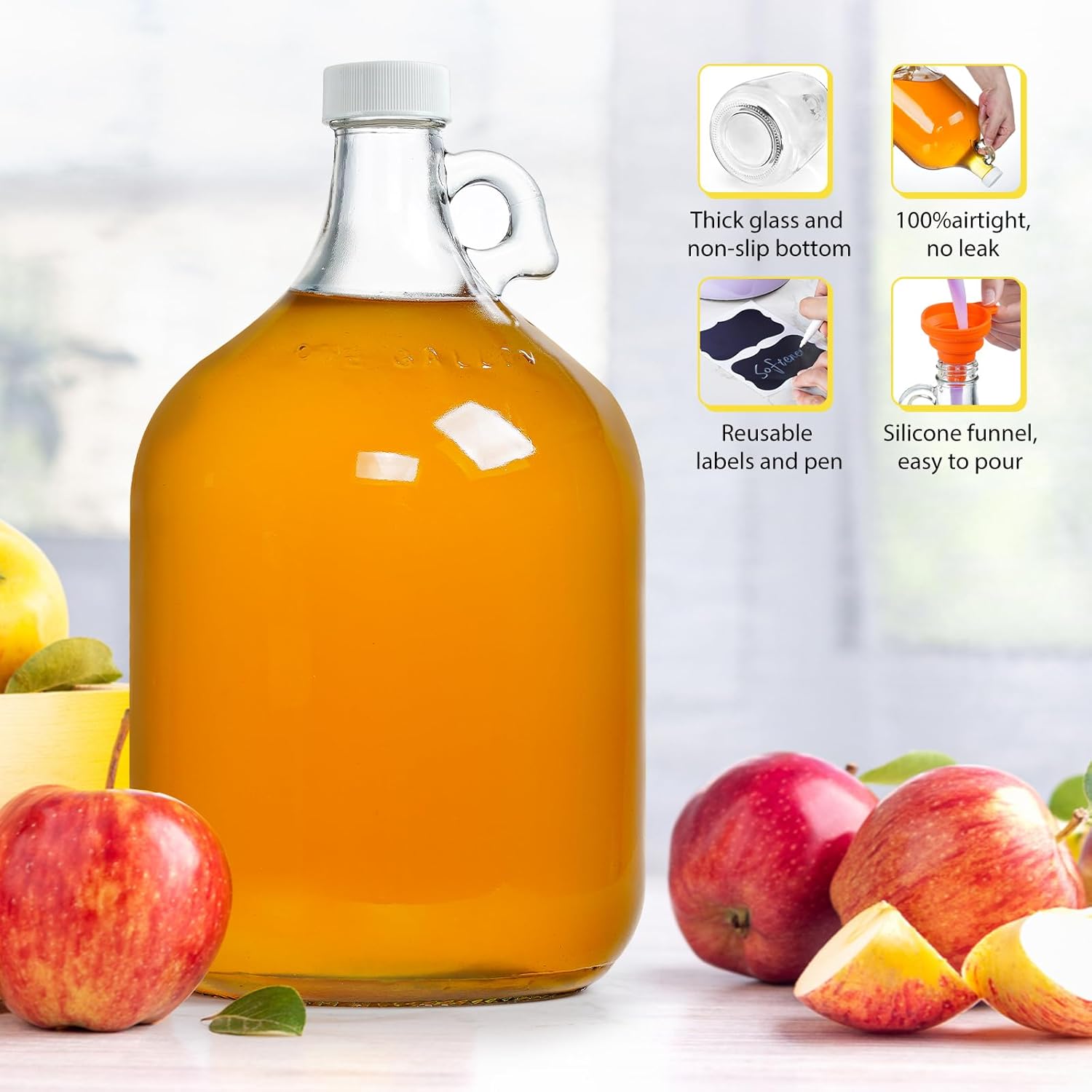 - 100% Leak Proof with Screrw Lids: The gallon glass soap dispenser with pump come with airtight lid, make sure there is no water leakage, so they are perfect for storage of milk, juice, drinks, lemonade, sun tea, cider, beer, wine, etc. They also fridge safe