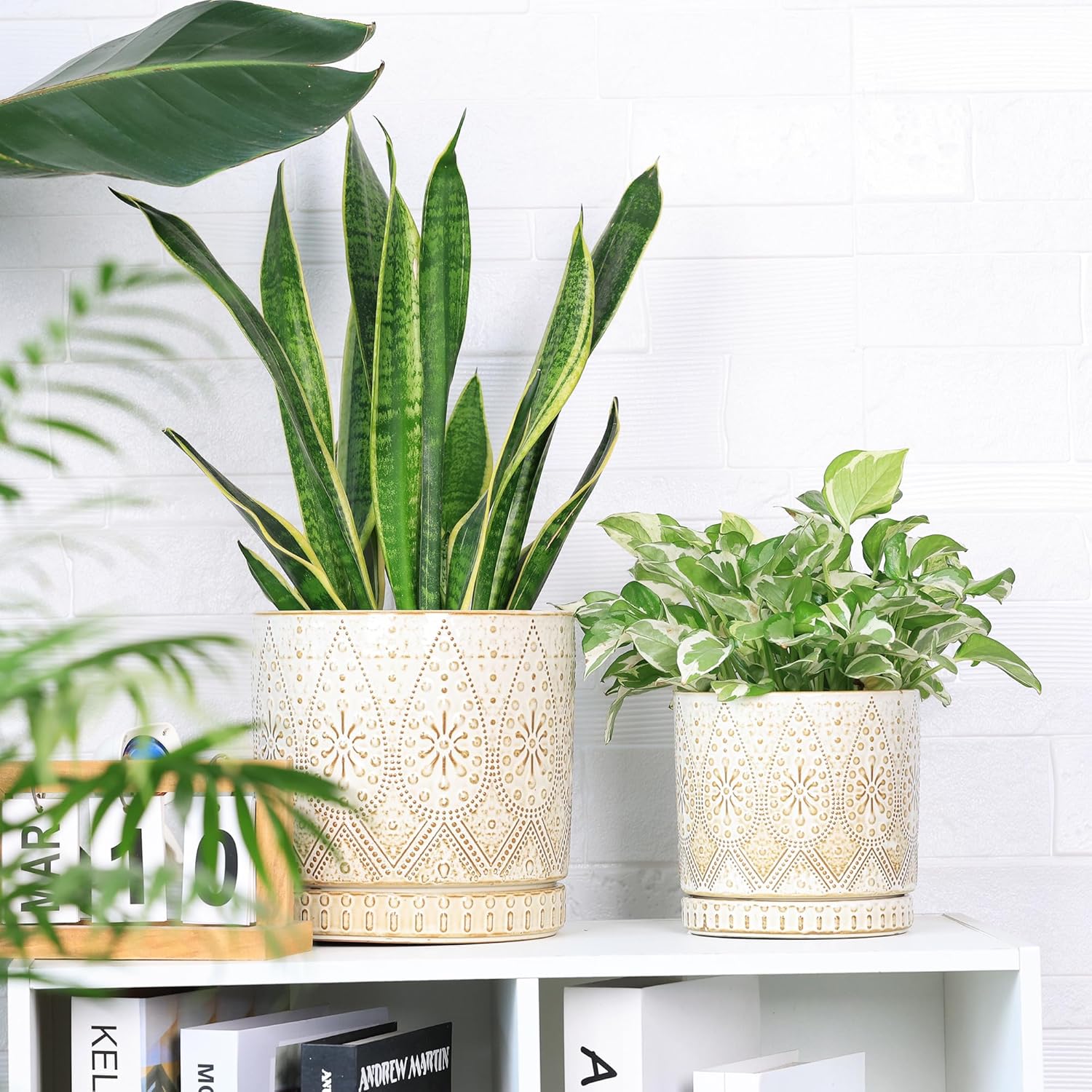 8 Inch + 6 Inch Indoor Plant Pot with Drainage Holes and Saucers, Ceramic Planter for Plants, Succulent Orchid Flower Pots