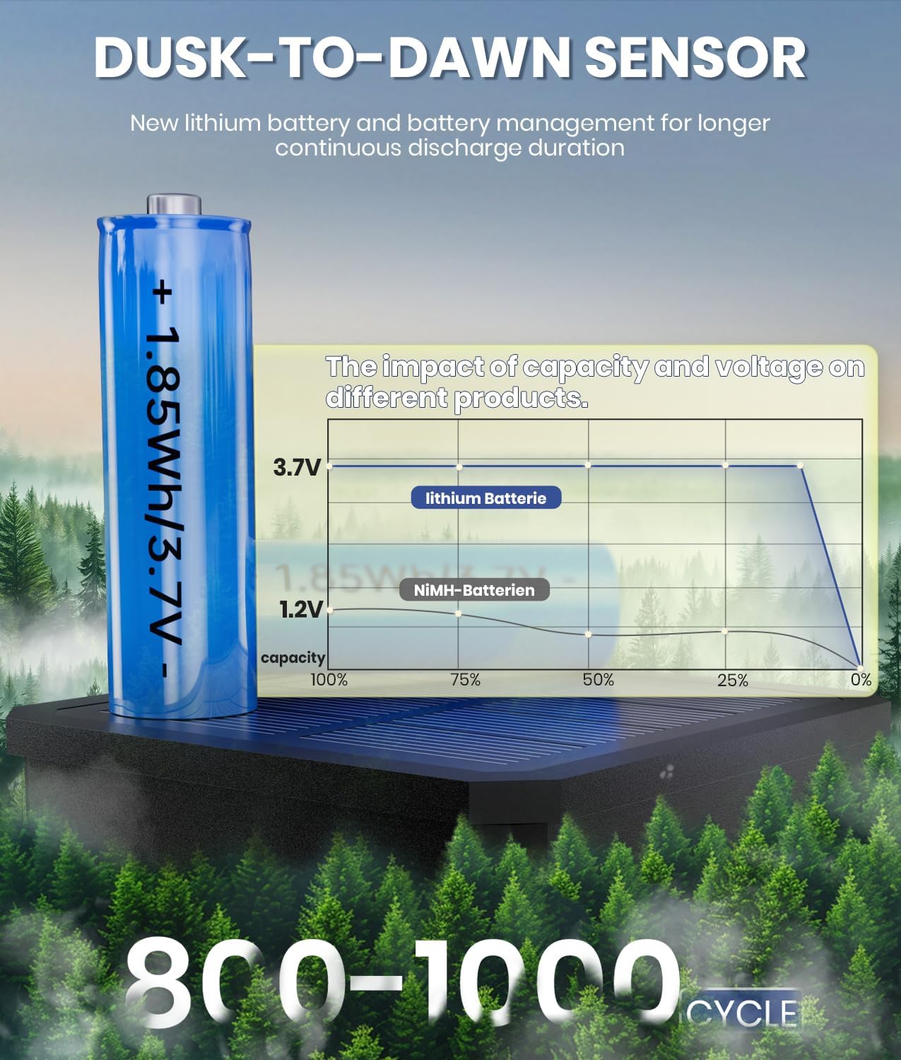 - 【New Upgraded Solar Panel & LONG-LASTING Lighting】Solar pathway lights outdoor are equipped with 5V monocrystalline silicon solar panels with 26% higher conversion rate, 800 mAh rechargeable Ni-MH battery.The solar powered landscape lights can illuminate for 10 -12 hours on a 4-6 hour sun day charging. Compared with other solar lights outdoor waterproof, our solar lights outdoor charge faster and work longer.