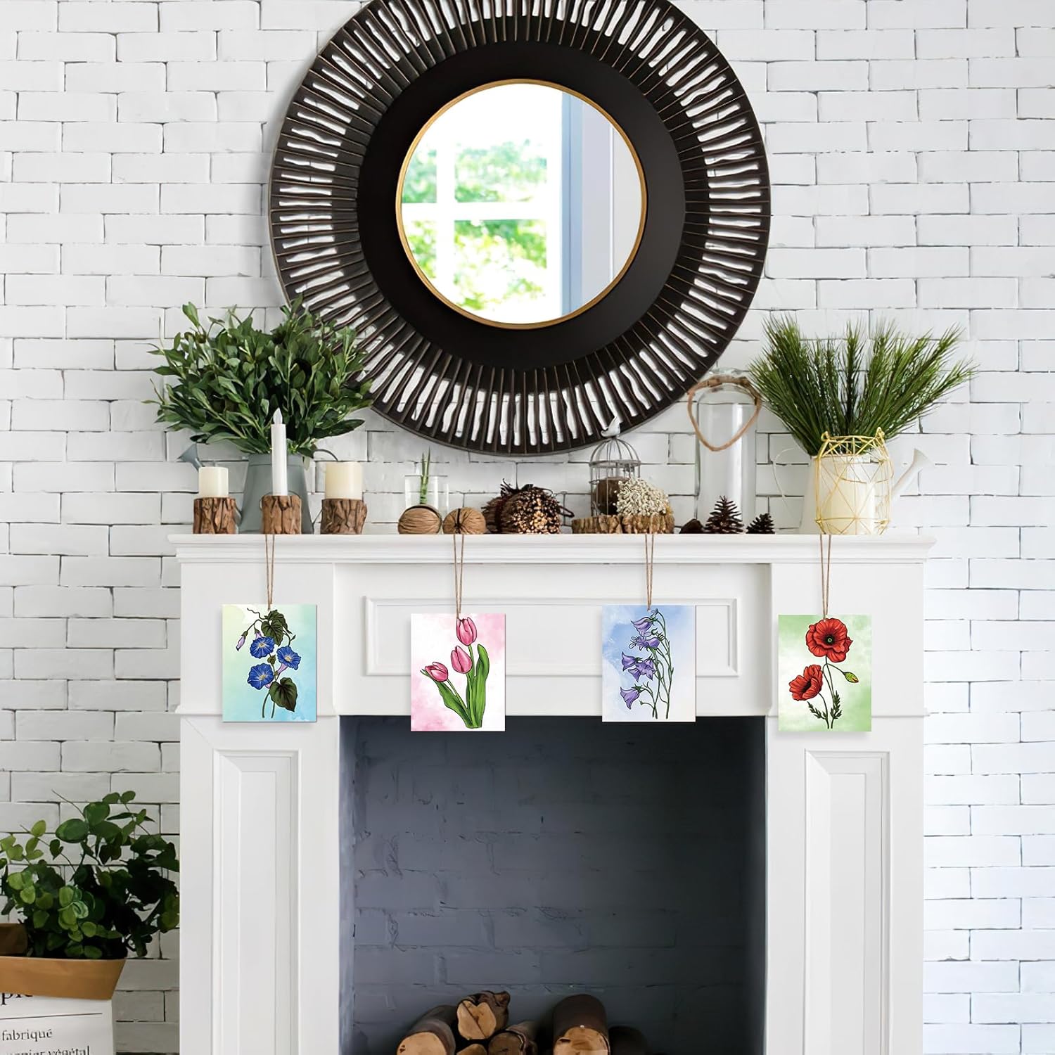 COCHIE 10 Pieces Large Flowers Unfinished Wood Crafts to Paint for Adults and Kids, Bulk Predrilled Wooden Ornaments for Painting, Tulips Flower Paintable Wood Slices Craft Supplies with Ropes