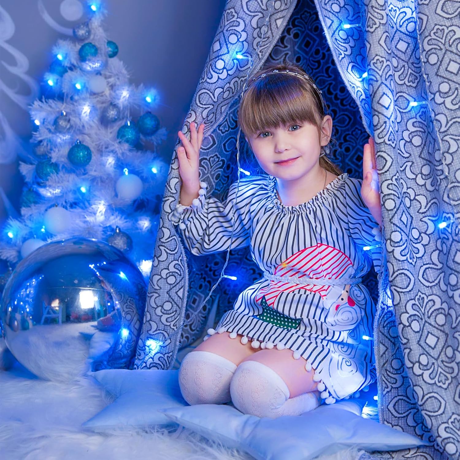 - Waterproof Fairy Lights Plug in: The blue Christmas lights design with IP44 outdoor waterproof, can withstand wind, snow, rain and extreme weather. String lights are equipped with a UL certified 29V low-voltage plug ensures the safety. It's safe for family with kids or pets!