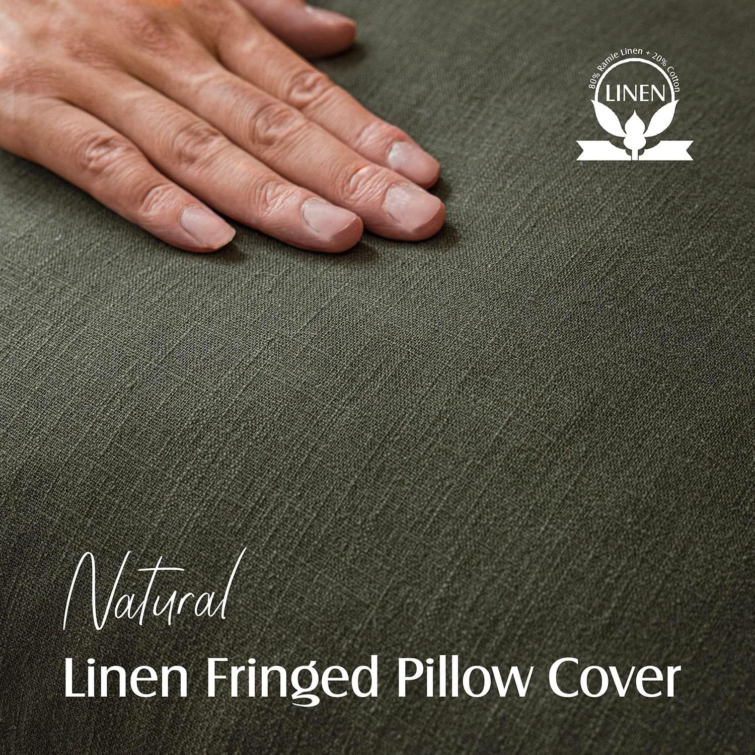 Foindtower Set of 2 Decorative Linen Fringe Lumbar Throw Pillow Covers Boho Farmhouse Cushion Cover with Tassels Accent Pillowcase for Couch Sofa Bed Living Room Home Decor,12×20 Inch,Dark Olive Green
