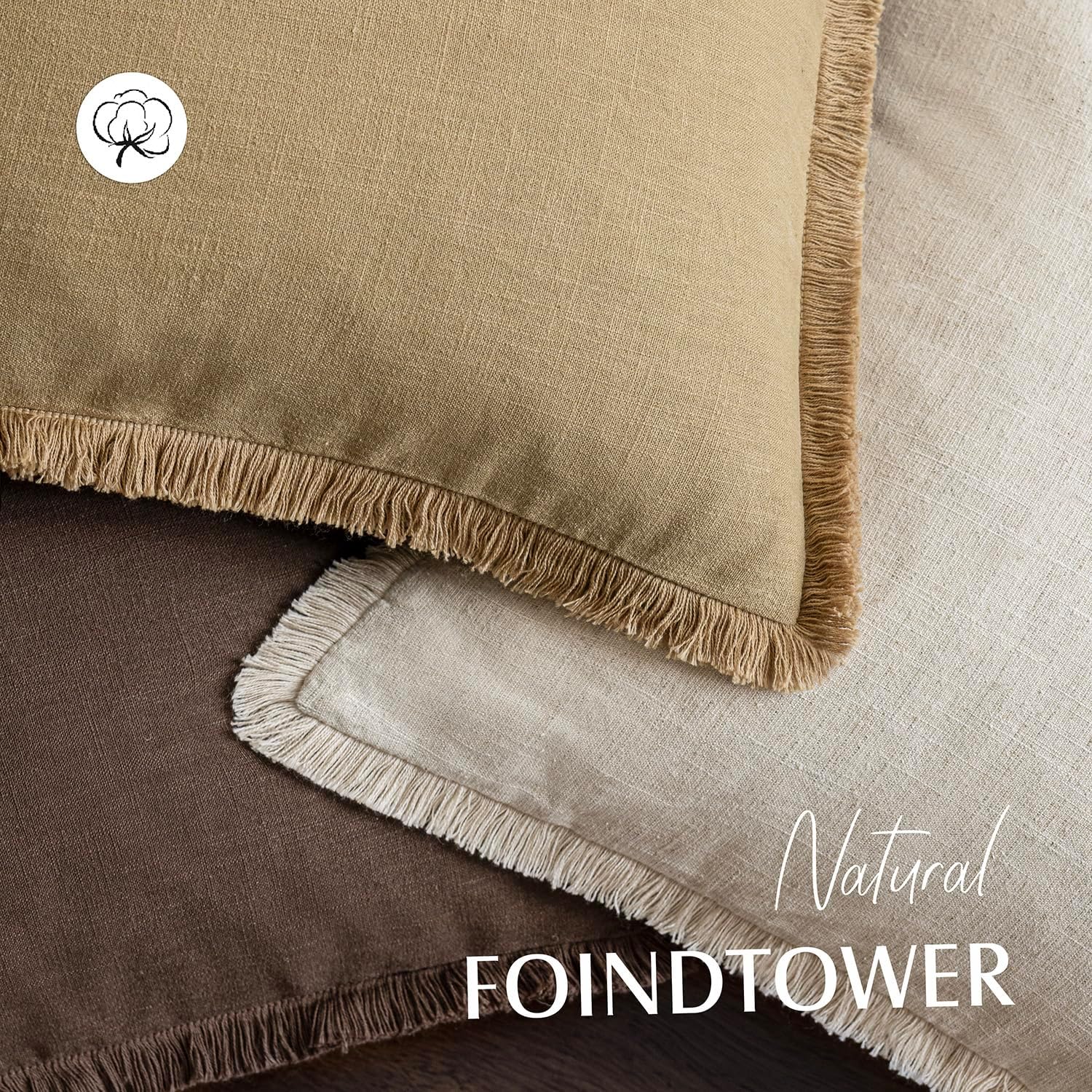 Foindtower Set of 2 Decorative Linen Fringe Lumbar Throw Pillow Covers Farmhouse Cushion Cover with Tassels Accent Pillowcase for Couch Sofa Bed Living Room Home Decor,12×20 Inch,Light Khaki Taupe