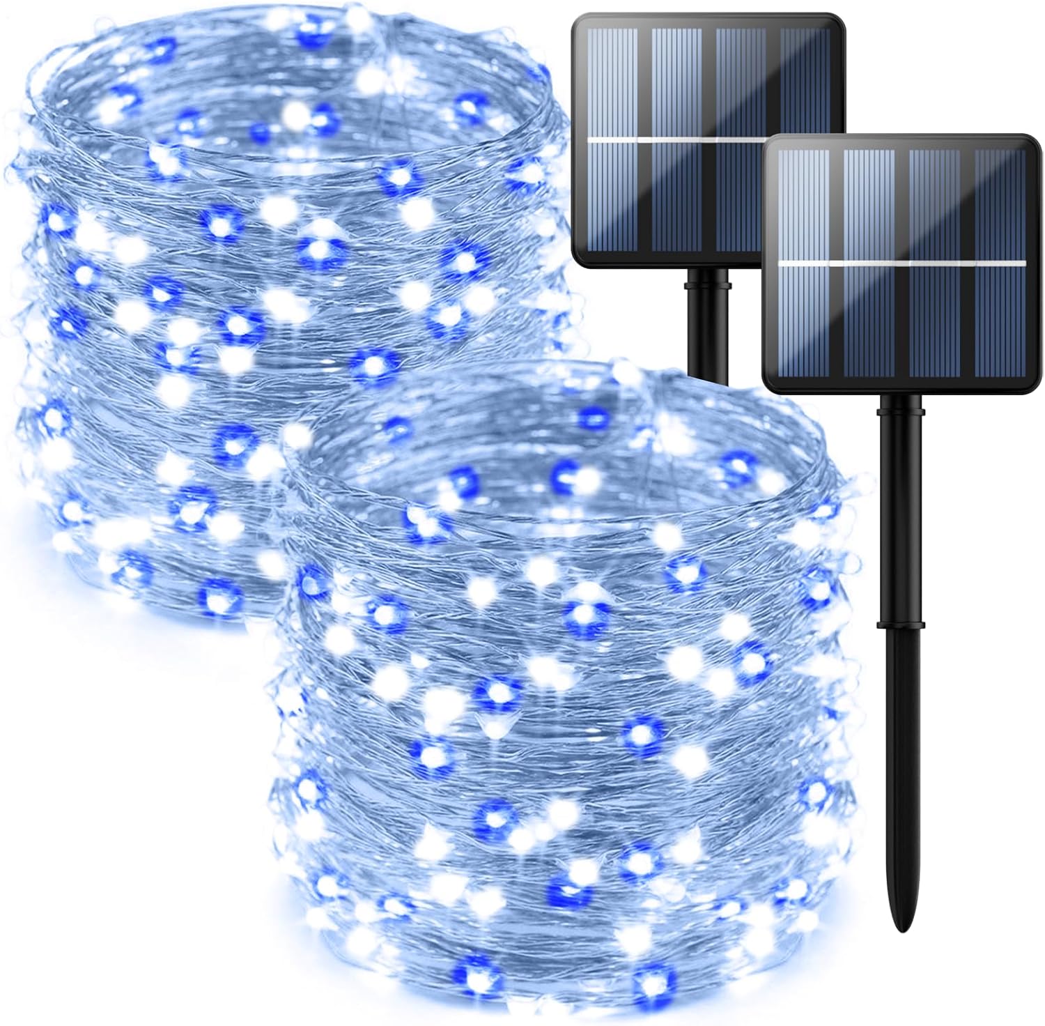 2-Pack 200 LED Solar Fairy Lights Outdoor, Upgraded Oversize Lamp Beads & Super Bright Solar String Lights Outoor, 8 Modes Solar Lights for Garden Patio Decorations(Blue&White)