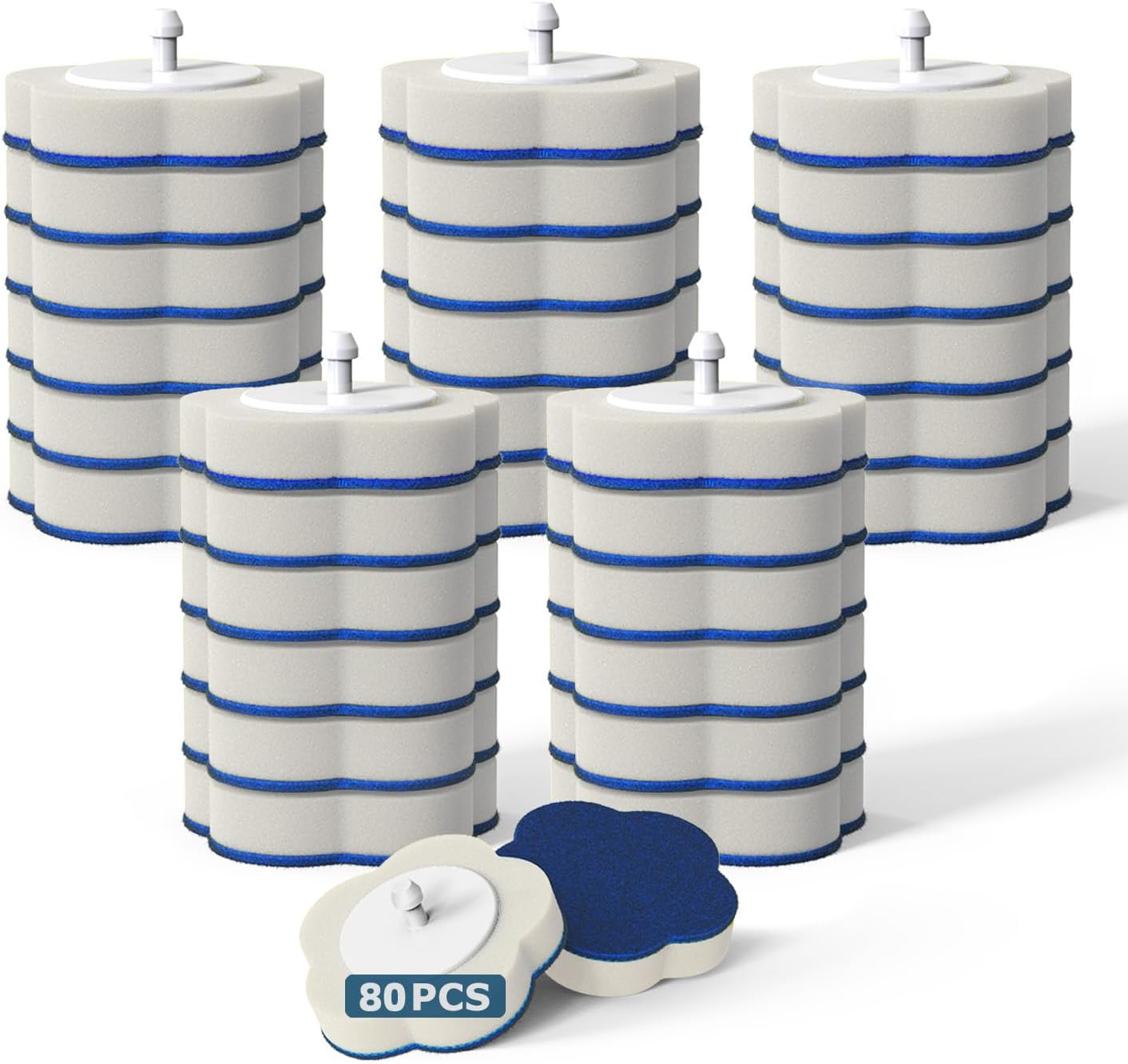 Disposable Toilet Bowl Wand Refills【Not Suitable for Other Brands】, 80 Count Disposable Toilet Brush Refills, Toilet Cleaning Sponges Heads for Bathtub, Floor, Drain