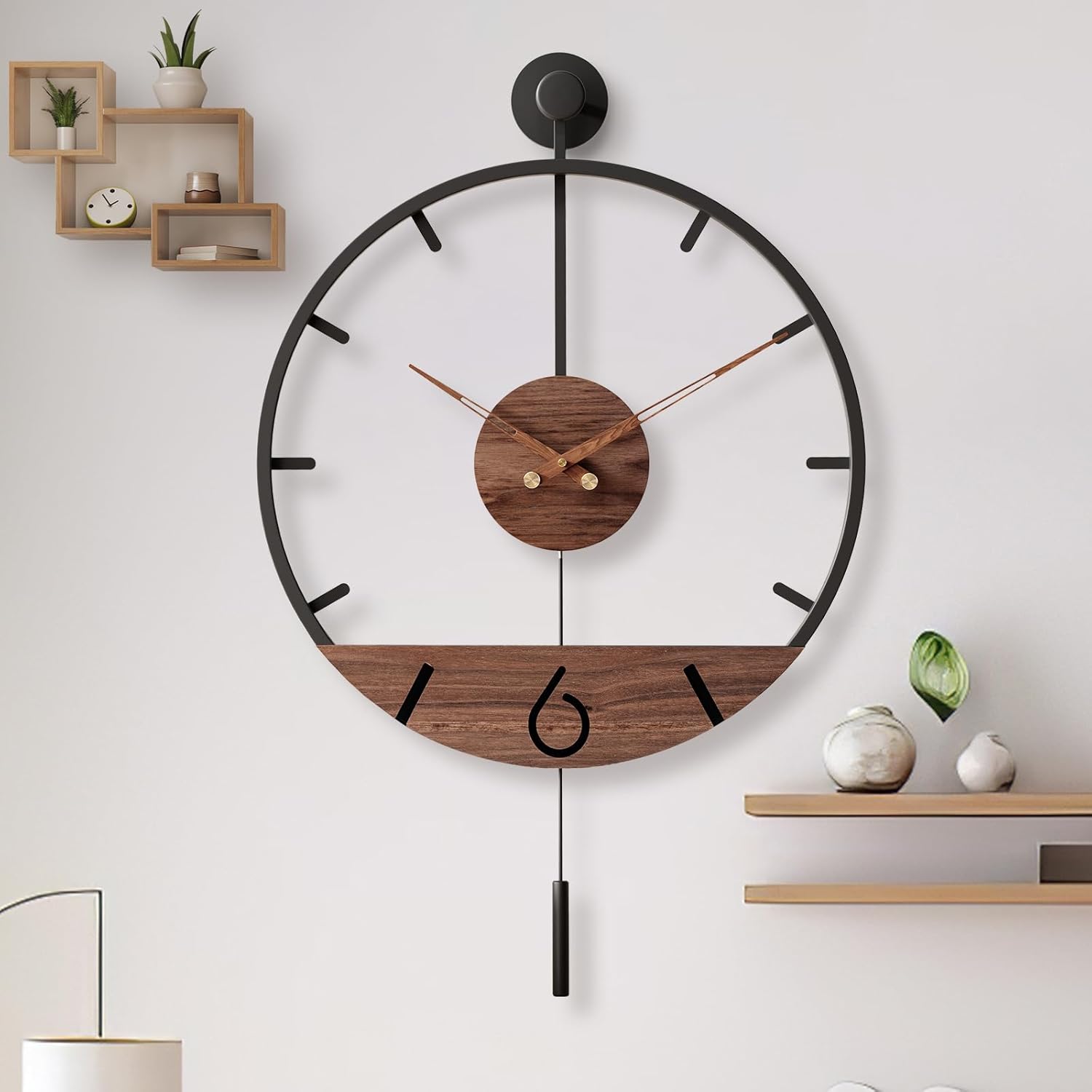 - 【Superb Craftsmanship With Walnut Material】Concentration on details,the large wall clocks for living room decor exhibits quality craftsmanship.The metal frame construction is sturdy and durable,mixed with modernity and classical elegance,exuding a sense of quality,really a lasting addition to the home decor.