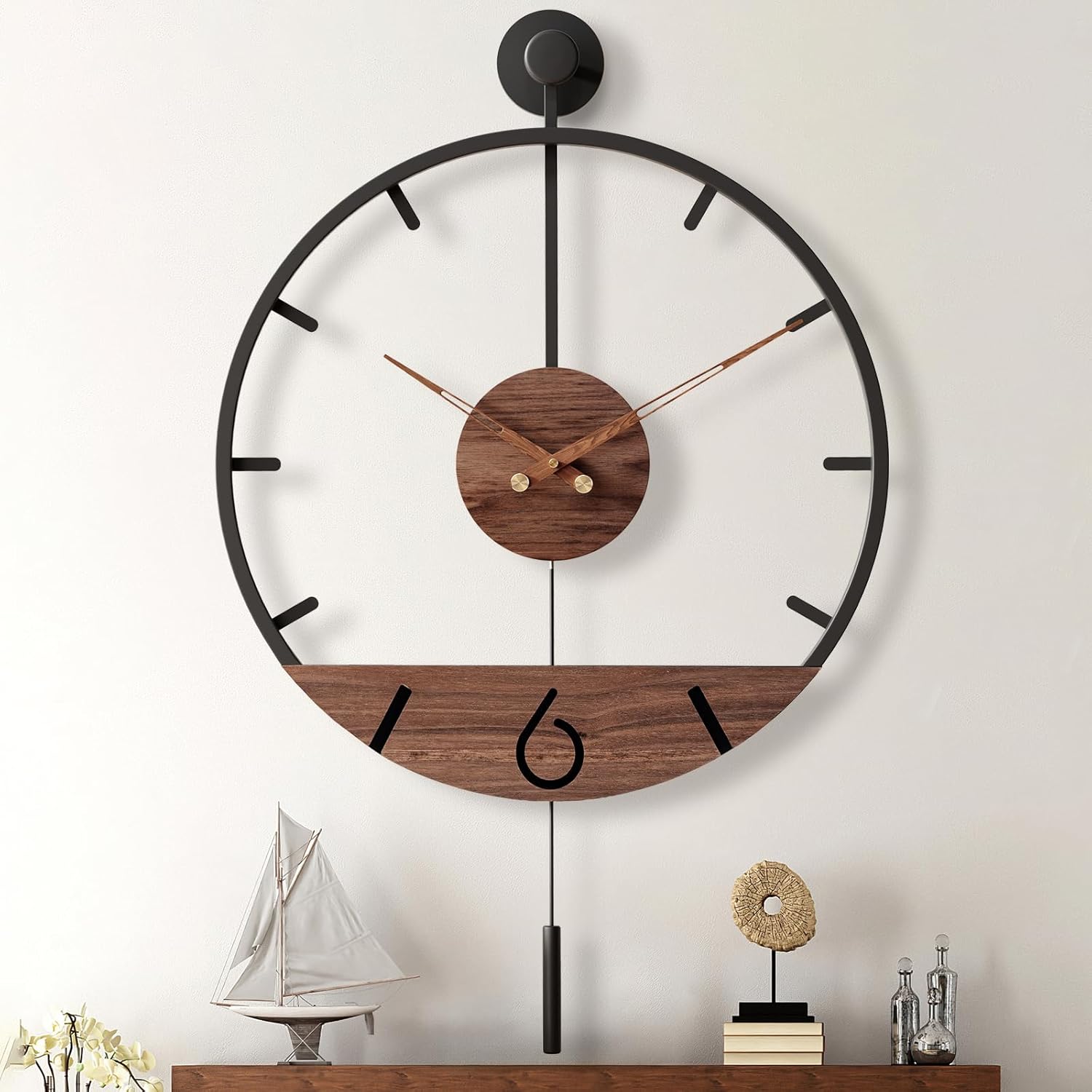 34.6×24 Inch Large Modern Decorative Pendulum Wall Clock,Big Metal Farmhouse Oversized Silent Wall Clocks Minimalist Elegant Walnut Dial Pointers for Living Room,Office,Dining Room Decor