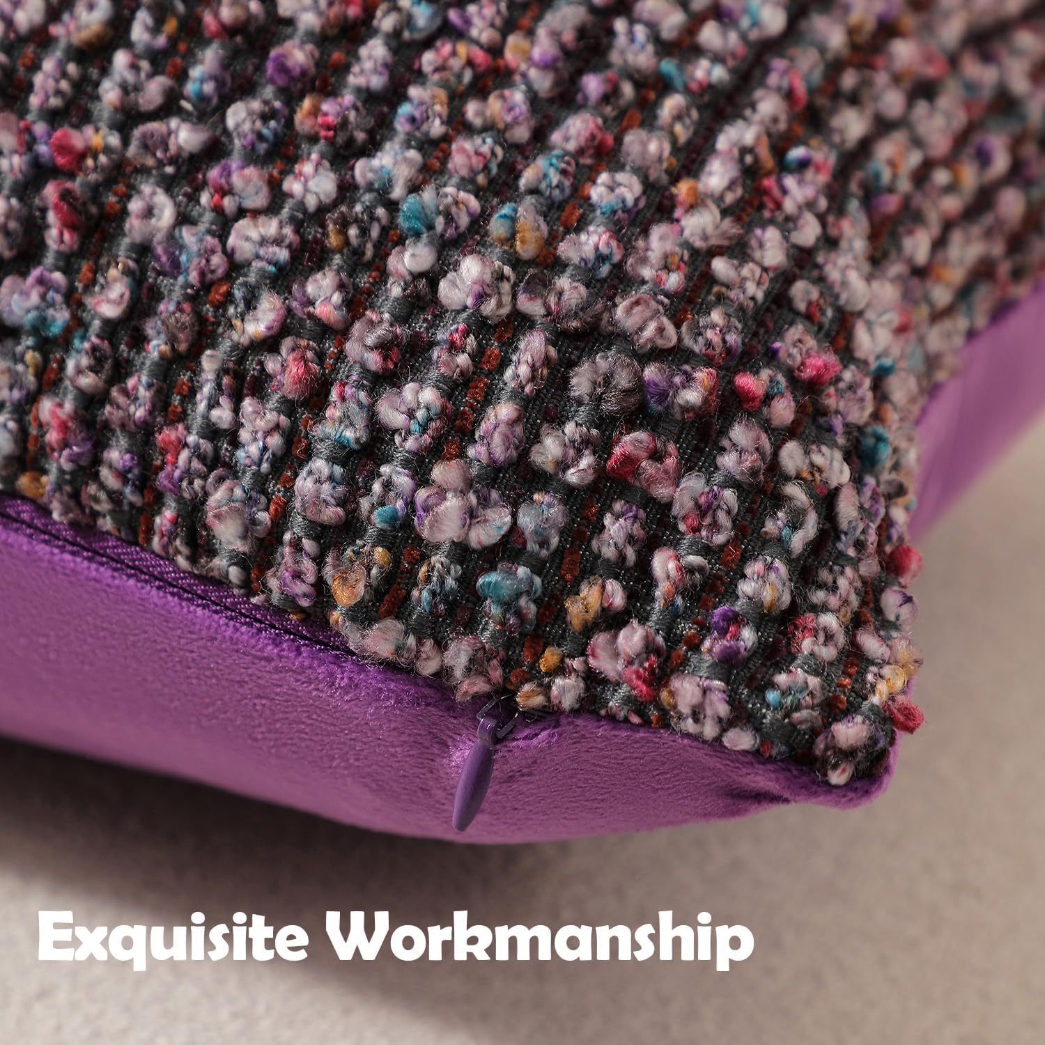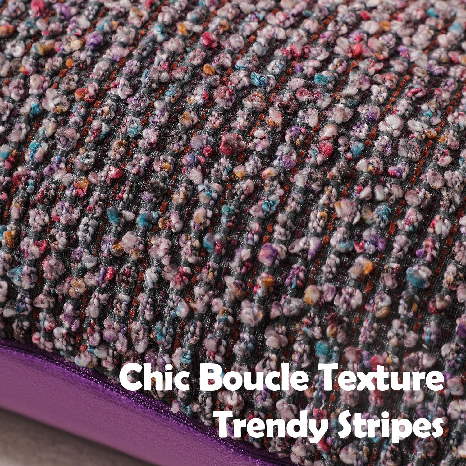 DEZENE Striped Throw Pillow Covers 18x18 Set of 2 Colorful Purple Textured Boucle Chic Morden Boho Accent Farmhouse Square Decorative Couch Pillow Covers for Home Decor Bed Sofa Living Room