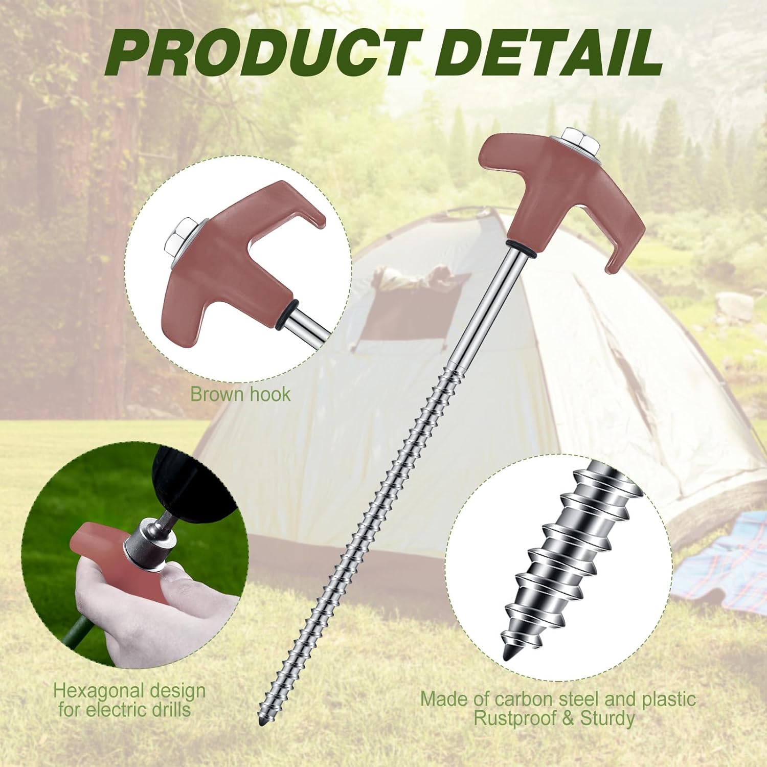 Hicarer 20 Pcs 20 Pcs 8'' Screw in Tent Stakes Heavy Duty Ground Metal Stakes for Inflatables with Hex Head Driver for Outdoor Camping Tent Inflatable Garden Decor (Brown)