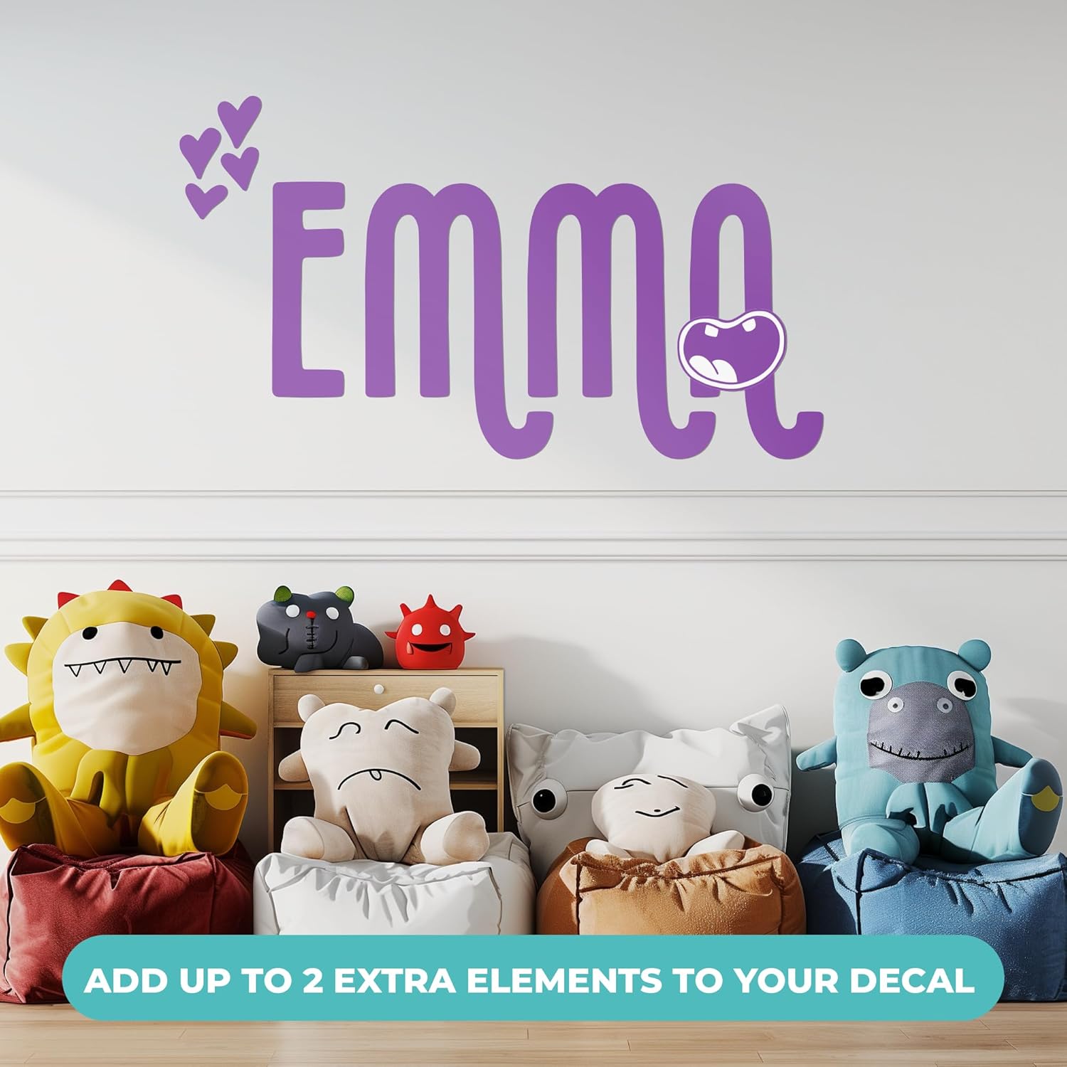 - 👾 FULLY CUSTOMIZABLE FUNNY STICKERS FOR KIDS: Elevate the ambiance of your baby room wall decor with fully customizable name stickers for wall! You can also add elements on some letters. Explore a variety of color names, and 5 sizes to create a boys room wall decor that perfectly aligns with your decor. Customize your space to perfection for a cute room decor! The perfect for playroom wall decor, kids room decor, kids bedroom decor, girl room decor, nursery wall decor.