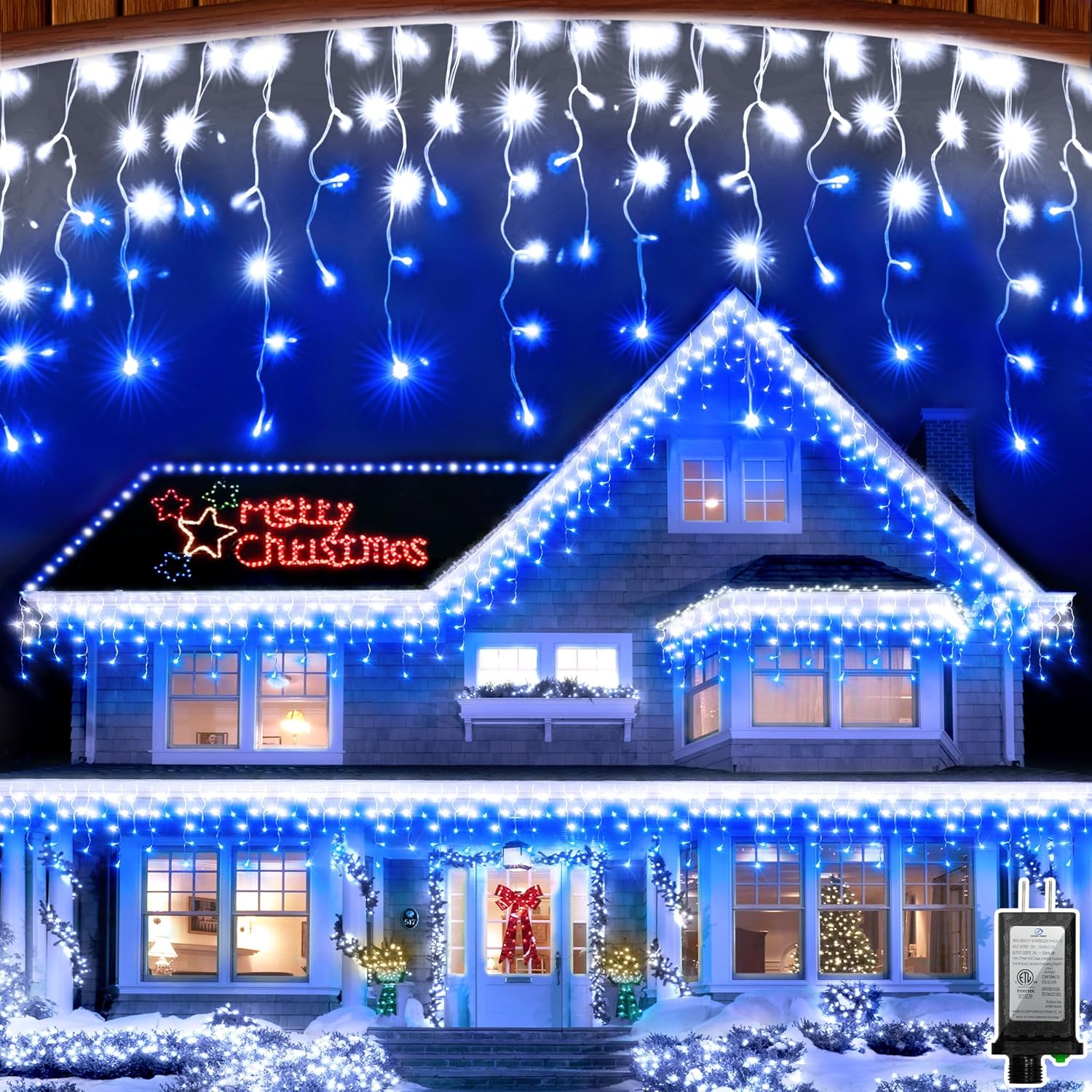 792 LED Christma Lights with 176 Drops, 82ft Outdoor Hanging lights with 8 Modes & Timer Memory, Outsite Waterproof Curtain String Lights for Front House Fence Tree Holiday Decorations Blue & White