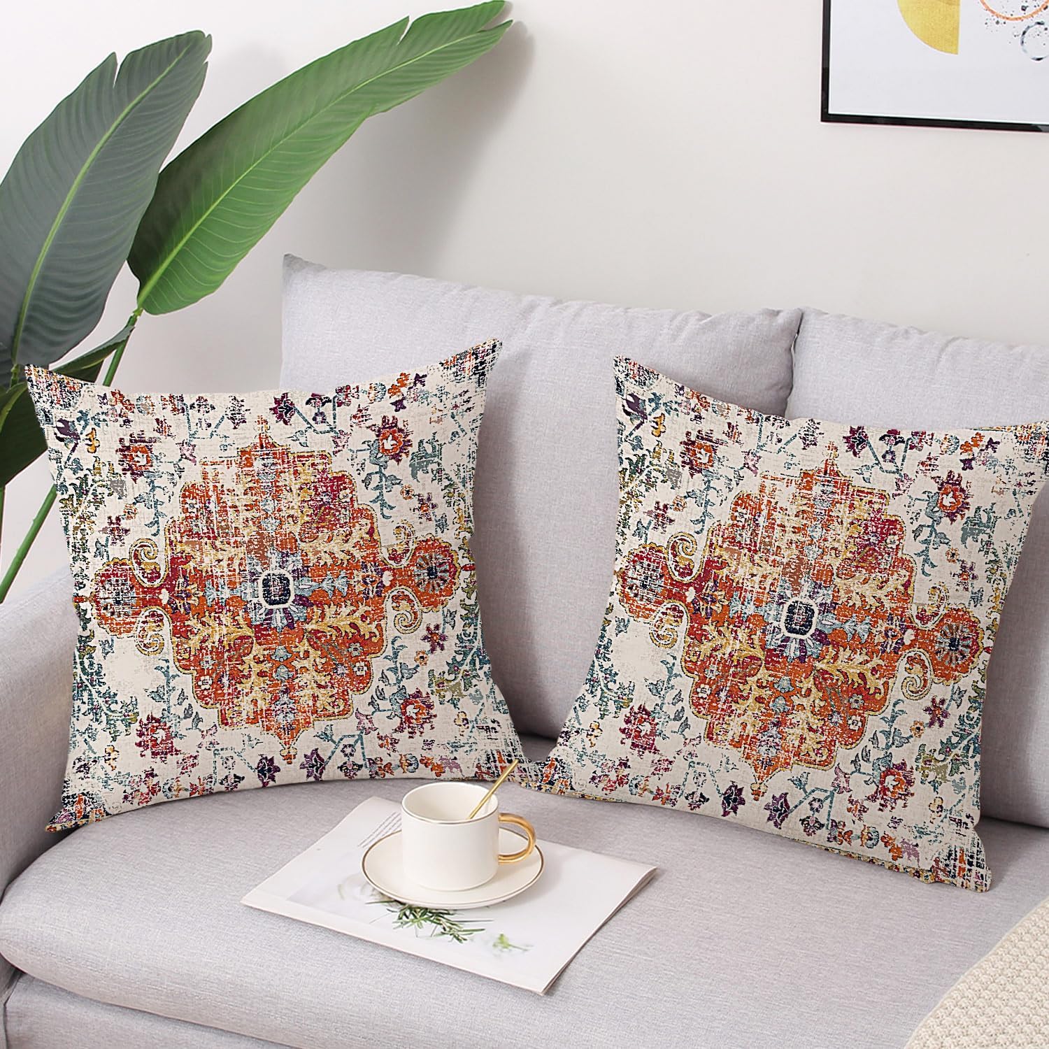 - 【Unique Design】:Unique bohemian carpet vintage floral pillowcase,The printed pattern is only available on front side, back is linen beige color without any printing. It can help you quickly change decorations, refresh your living space, and mix and match with other decorative pillows or holiday decorations. It's also a nice gift for family and friends