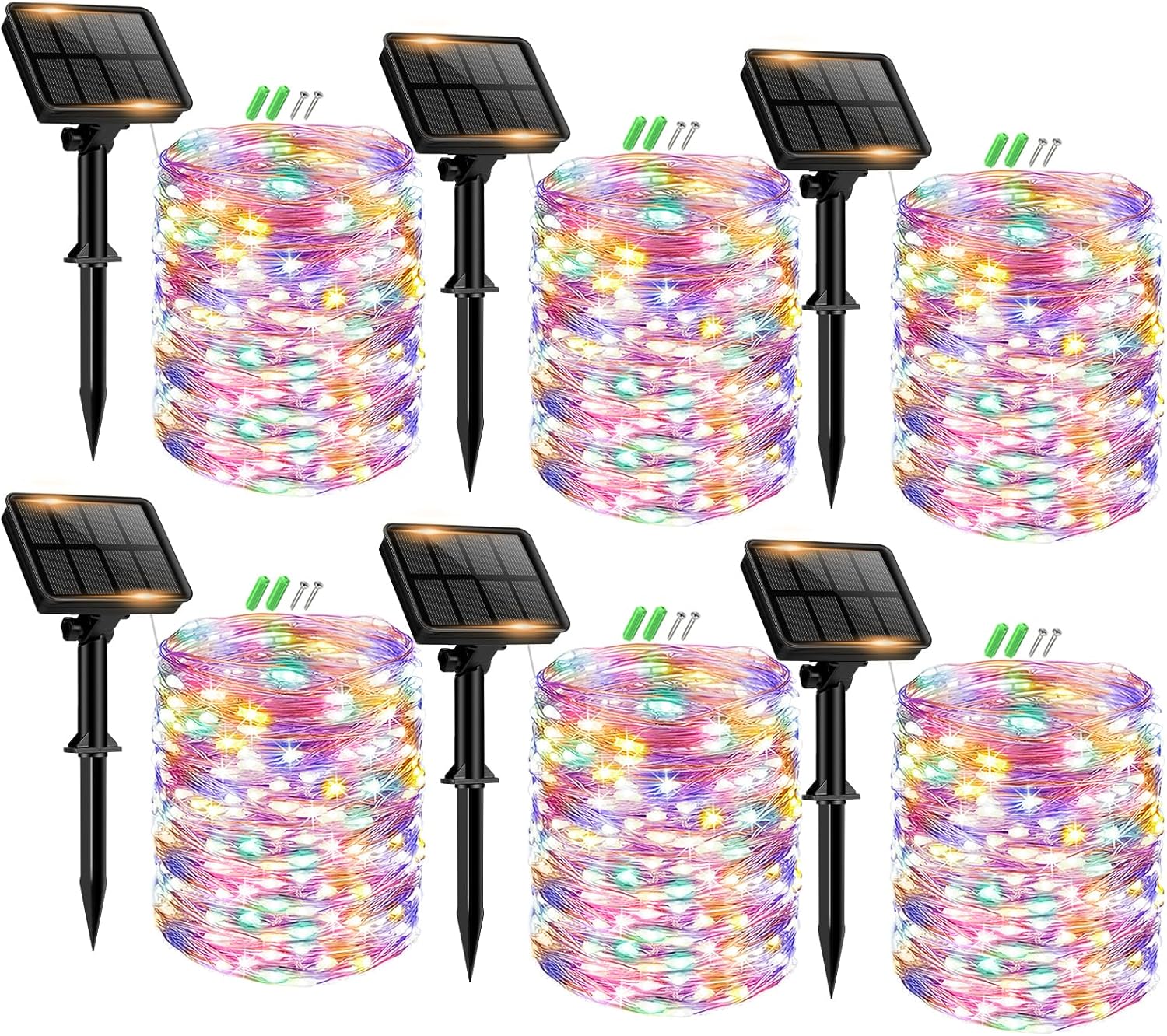 6 Pack Solar Fairy Lights for Outside Waterproof, 49FT/15M 150LED Solar String Lights Outdoor 8 Modes Solar Twinkle Lights for Garden Yard Christmas Tree Wedding Party Decor, Multicolor