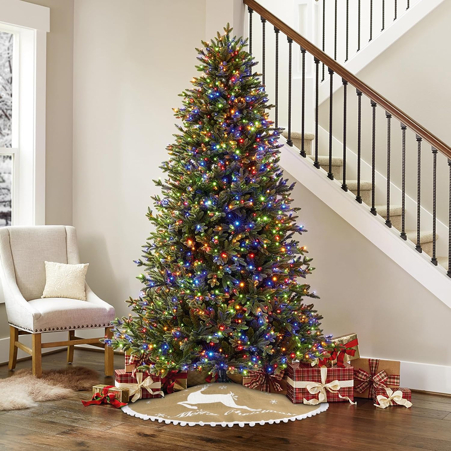 - Burlap Material Tree Skirt:This rustic tree skirt Christmas is made from natural burlap. The color has been safely treated to present a classic Christmas linen color. This fabric makes the Christmas tree skirt tough, durable, and environmentally friendly, and it will not pill. The tree skirt can be reused in subsequent years