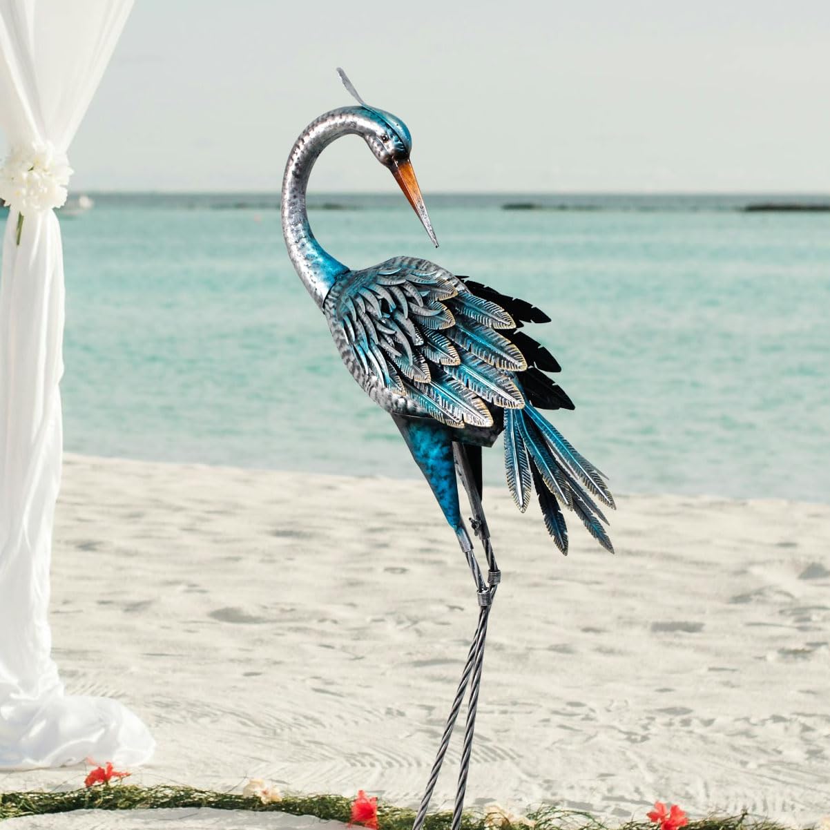 37 Inch Blue Heron Crane Statue, Metal Yard Art Outdoor Decoy, Garden Sculpture for Lawn/Pond Decoration, 1Pc, ORTBL-CR24053A-18