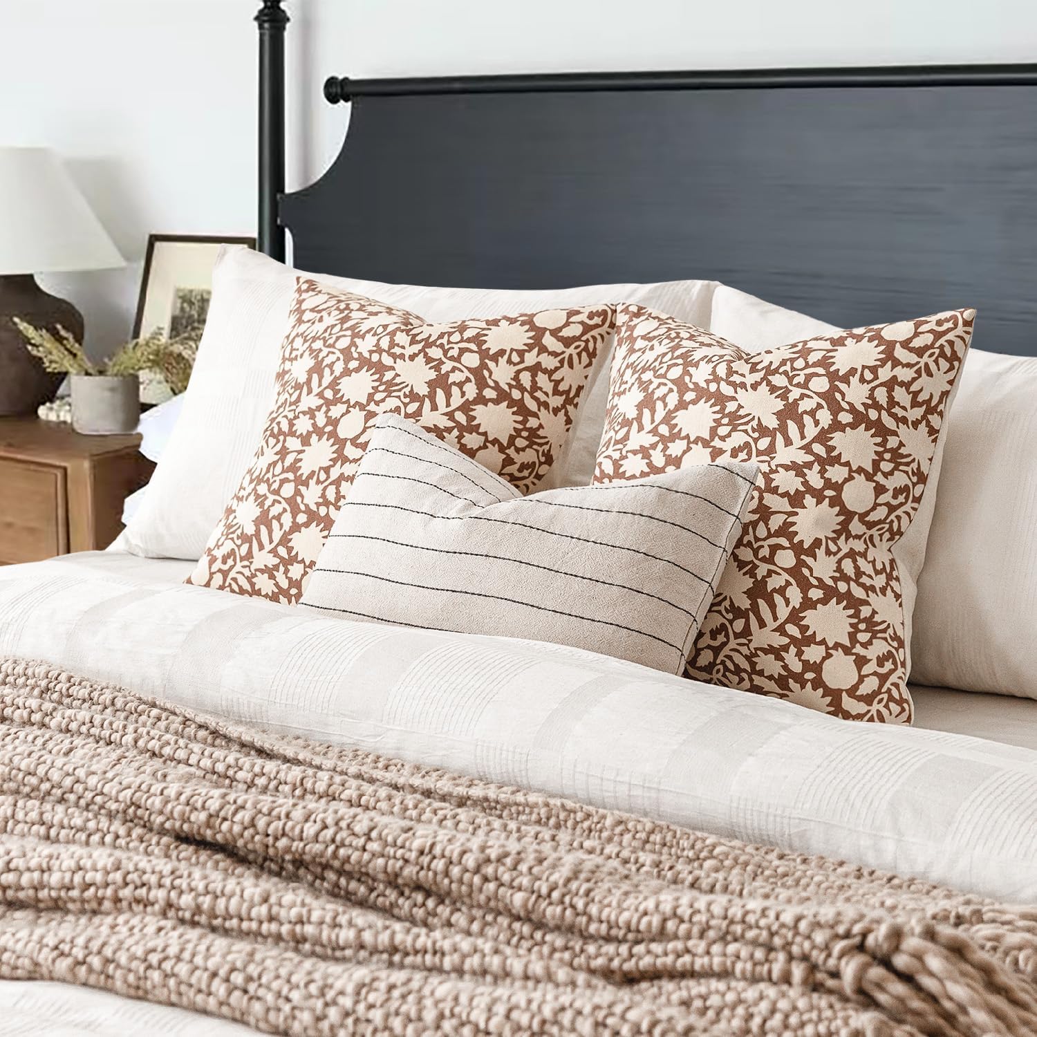 Foindtower Set of 2 Decorative Neutral Floral Throw Pillow Covers Accent Farmhouse Cushion Covers Boho Pillowcase for Couch Sofa Bedroom Living Room Home Decor Outdoor,18×18 Inch,Light Orange Brown