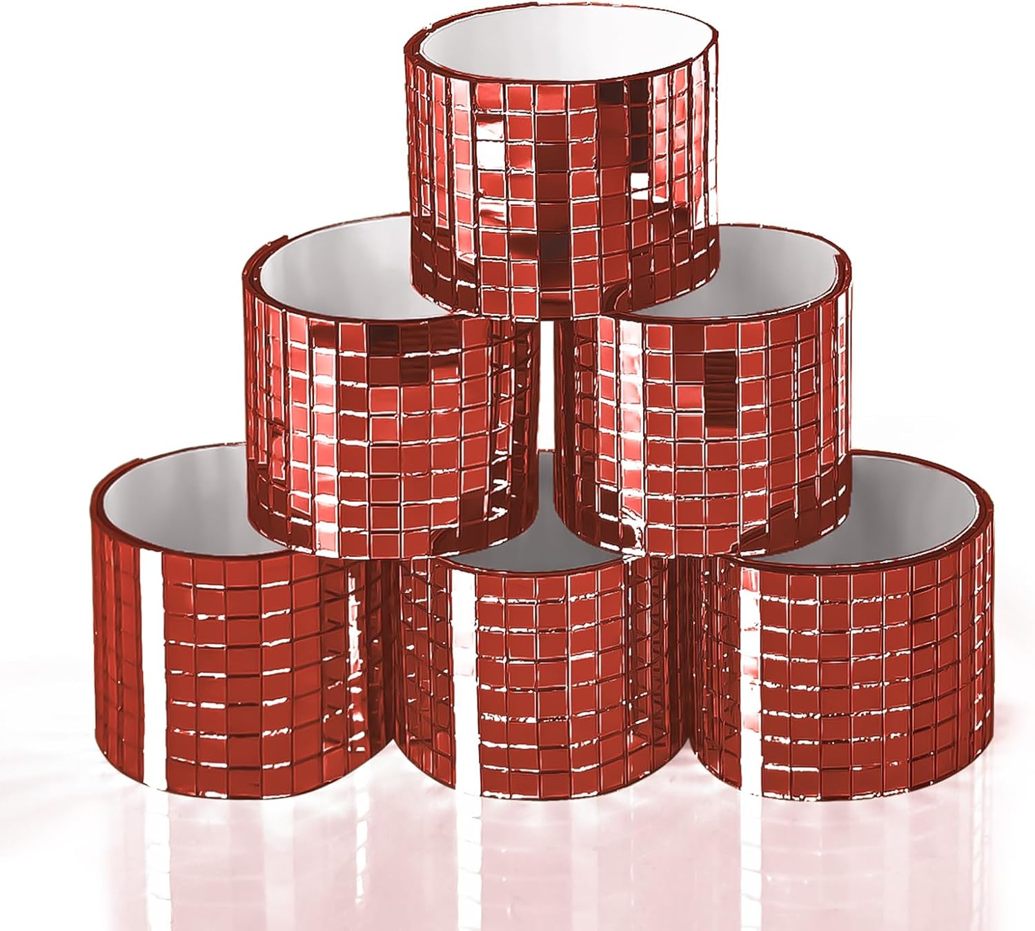 Art3dwallpanels 6 Pack Self Adhesive Glass Mirror Mosaic Disco Tiles Small Square Mirror Sticker for for DIY Disco Ball, Disco Cowboy Hat, Vase, Bottle, Interior Decoration, 2364 Pieces, Red