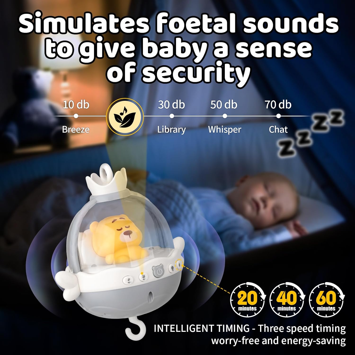 - ăVolume ControlăAdjustable volume ensures the perfect ambiance for your baby's sleep or play.