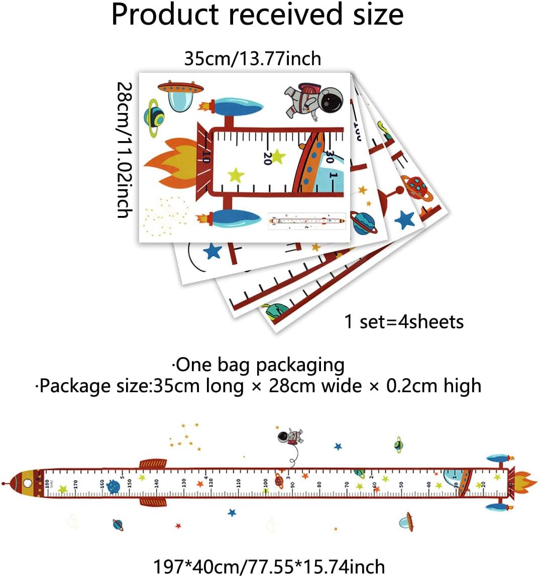 Rocket Self-adheve Vinyl Nursery Wall Decal Baby Growth Chart Sticker for Bedroom Play Room Peel and Stick Kindergarten Height Measure Mural