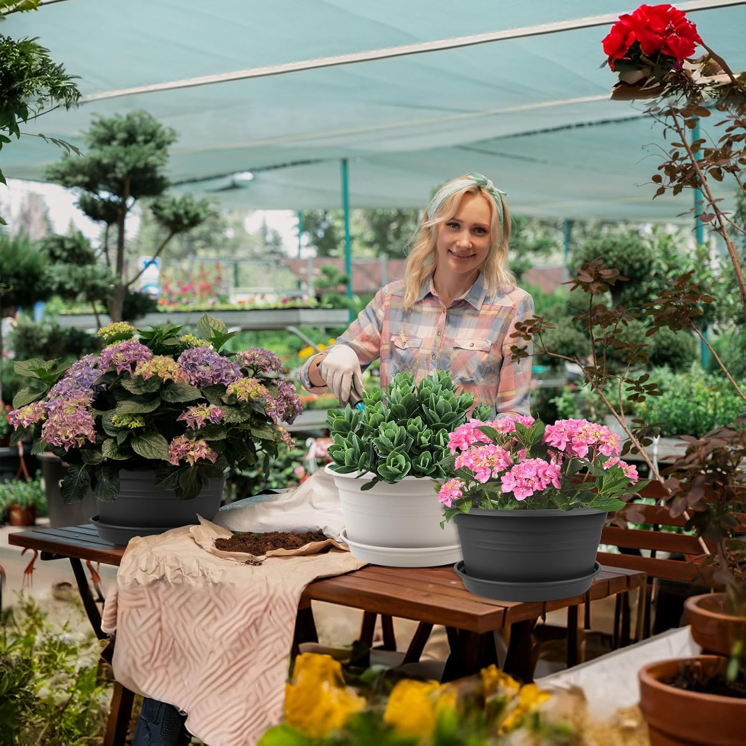 6 Pack 10 inch Plant Pot, Round Plastic Plant Pots, Outdoor Pots for Plants with Drainage Hole & Tray Saucer, Decoration Flower Pots for Indoor Plants Home Garden Outdoor Planters (Grey)