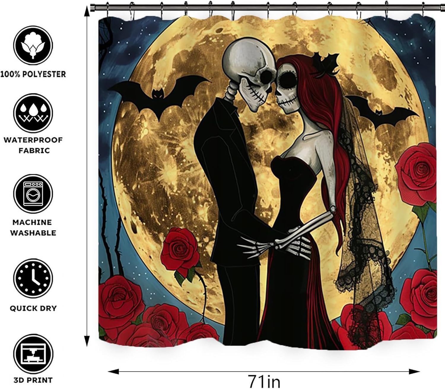 NEWSUYAA Halloween Decorations Shower Curtain Set with Non-Slip Rugs and Bath Mats,Black Skull Skeleton Bathtub Curtains with 12 Hooks,All Saints'Day (Nov 1st) Bathroom Decor