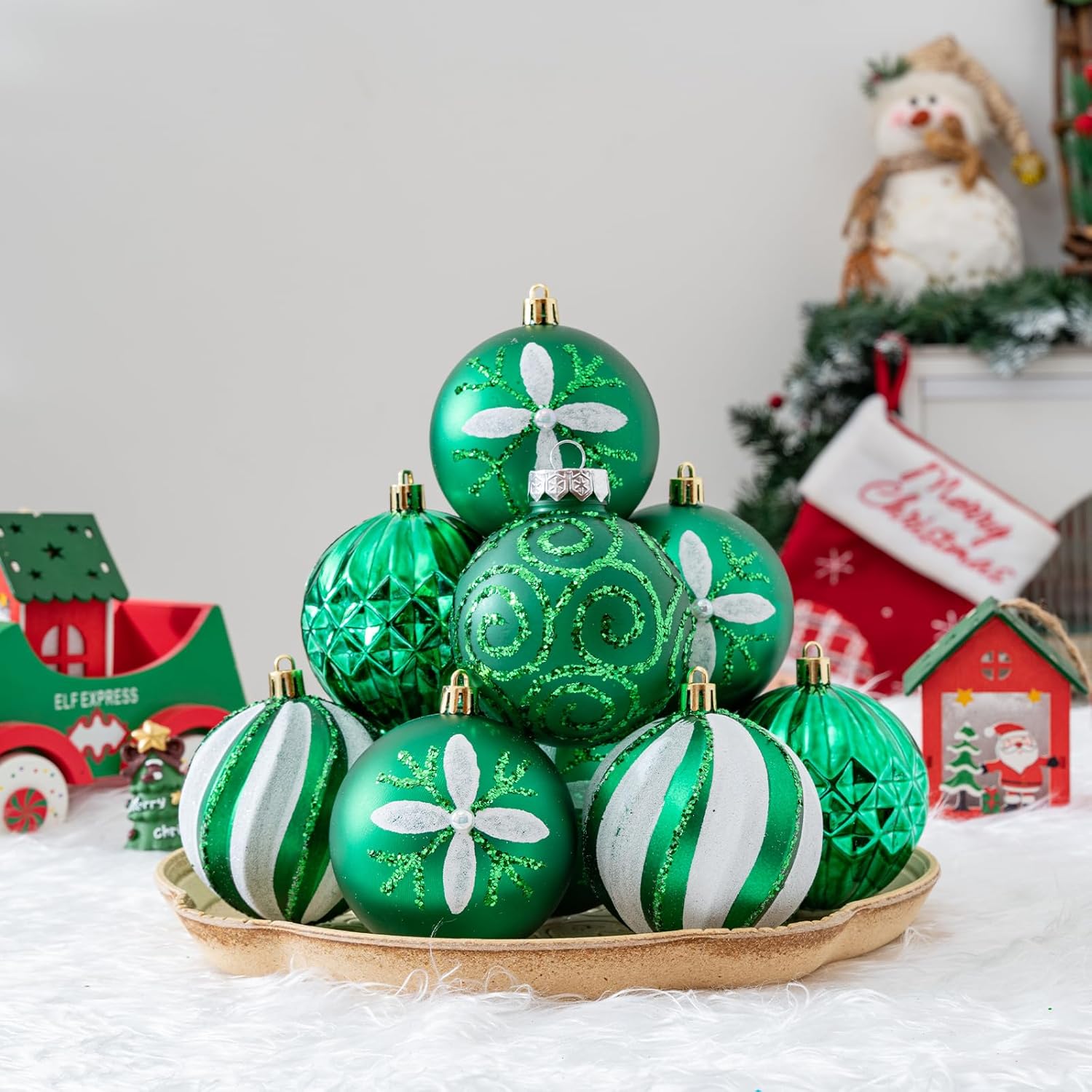 16Pcs Christmas Ball Ornaments Set, 3.15" Shatterproof Christmas Ornaments, Luxury Glitter Hanging Ornaments for Xmas Tree, Xmas Holiday, Party, Wedding (Green)