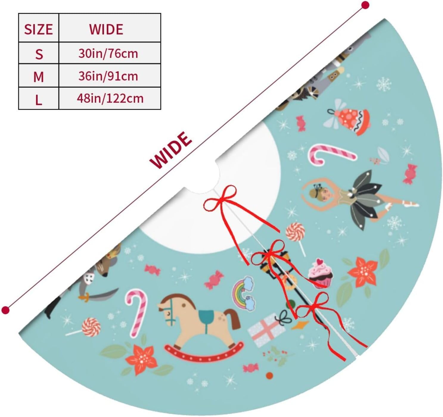 48" Large Christmas Tree Skirt, Turquoise Nutcracker Sweet Pattern Tree Mat Base Cover for Xmas Festive Holiday Party Decoration Ornaments