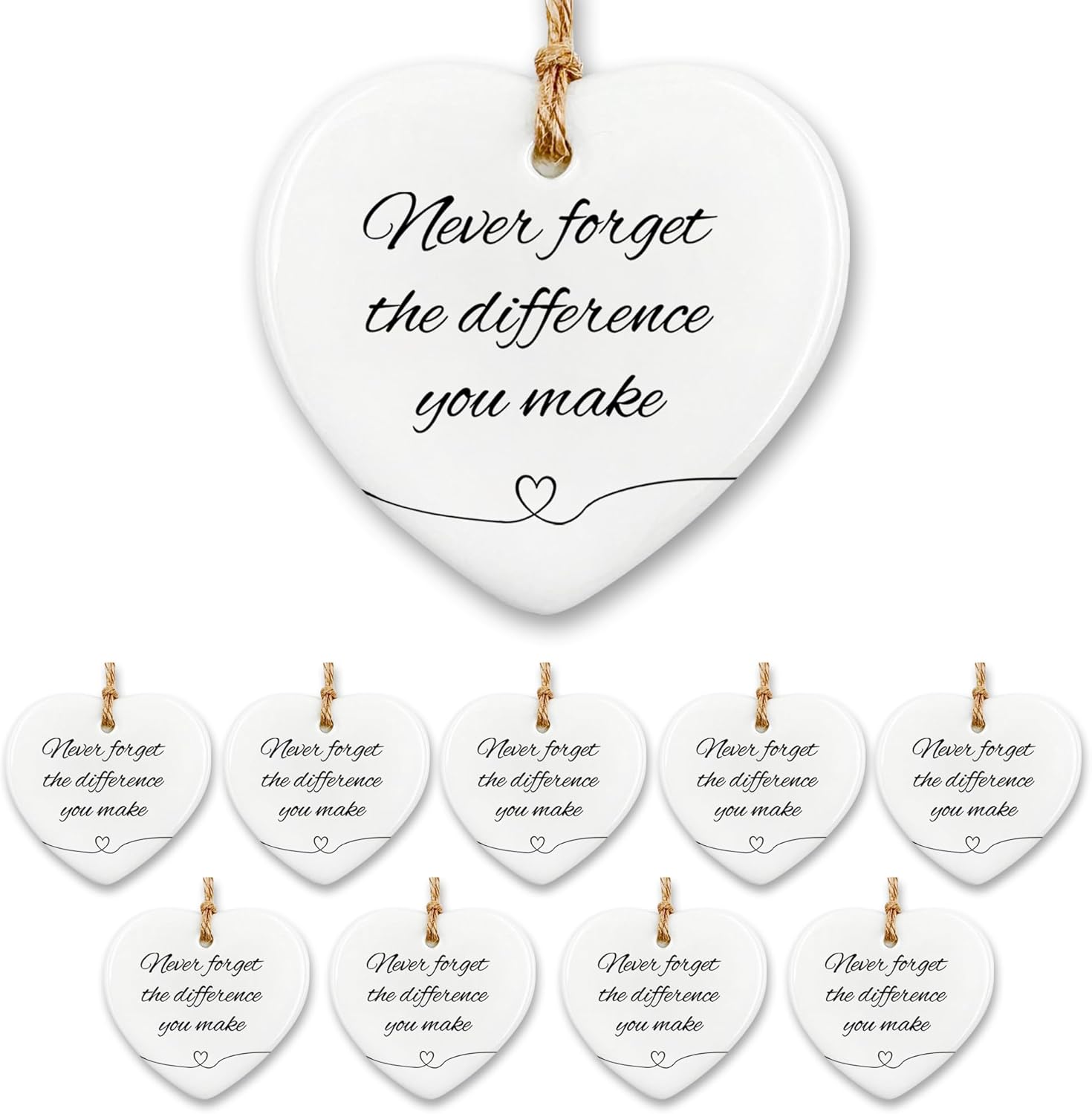 10 Pcs Thank You Gifts for Women Men - Never Forget The Difference You Make Ceramic Ornament Keepsake Appreciation, Retirement Gifts for Women Men, Farewell, Goodbye, Leaving Ideas for Coworker, Boss