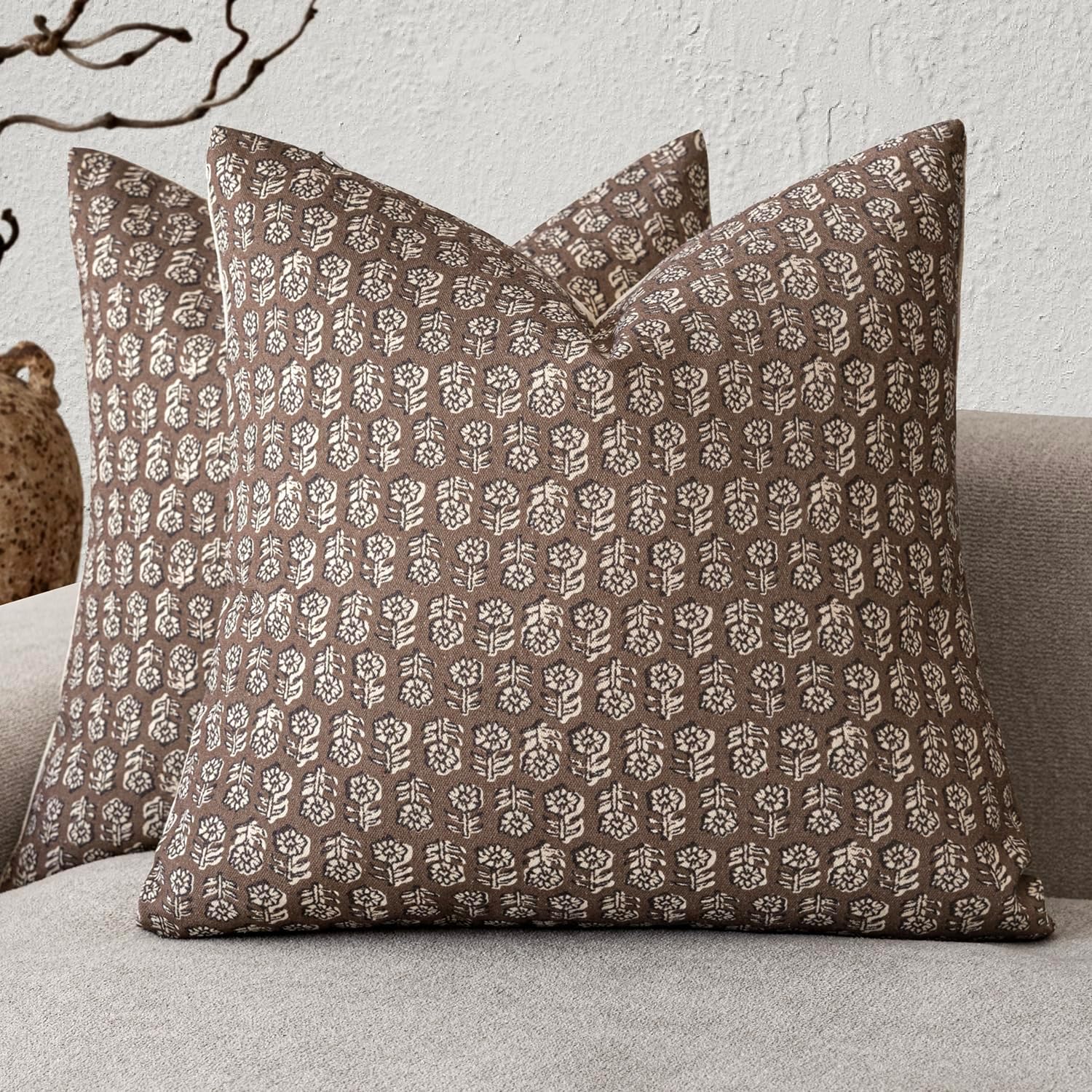 Foindtower Set of 2 Decorative Vintage Floral Print Throw Pillow Covers Neutral Modern Farmhouse Cushion Covers Boho Home Decor for Sofa Couch Chair Bedroom Living Room Outdoor,20×20 Inch,Brown