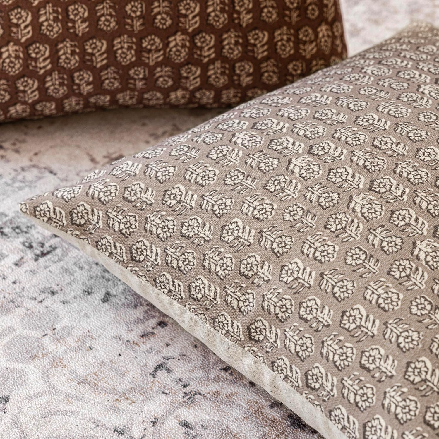 Foindtower Set of 2 Decorative Vintage Floral Print Throw Pillow Covers Neutral Modern Farmhouse Cushion Covers Boho Home Decor for Sofa Couch Chair Bedroom Living Room Outdoor,22×22 Inch,Tan Taupe