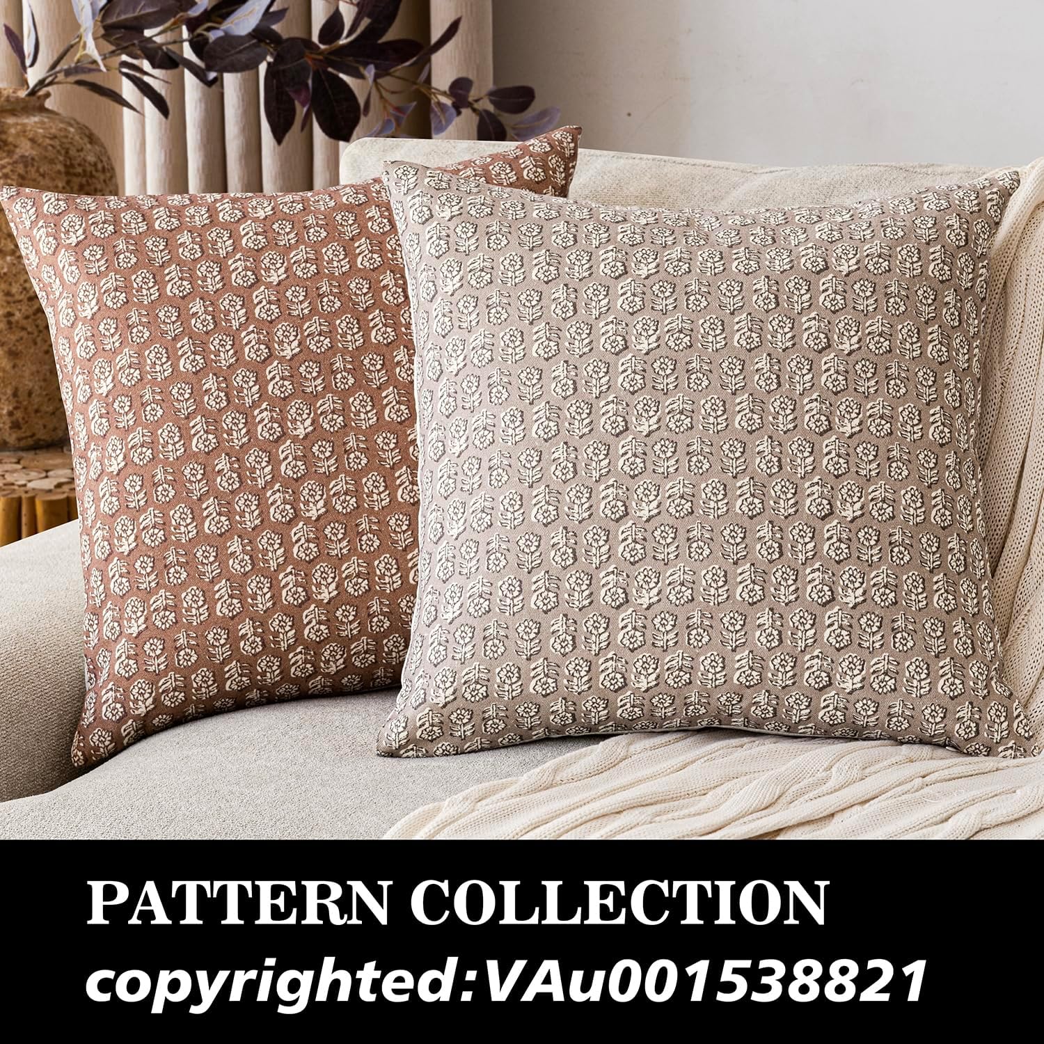 Foindtower Set of 2 Decorative Vintage Floral Print Throw Pillow Covers Neutral Farmhouse Cushion Covers Boho Home Decor for Sofa Couch Chair Bedroom Living Room Outdoor,20×20 Inch,Light Orange Brown