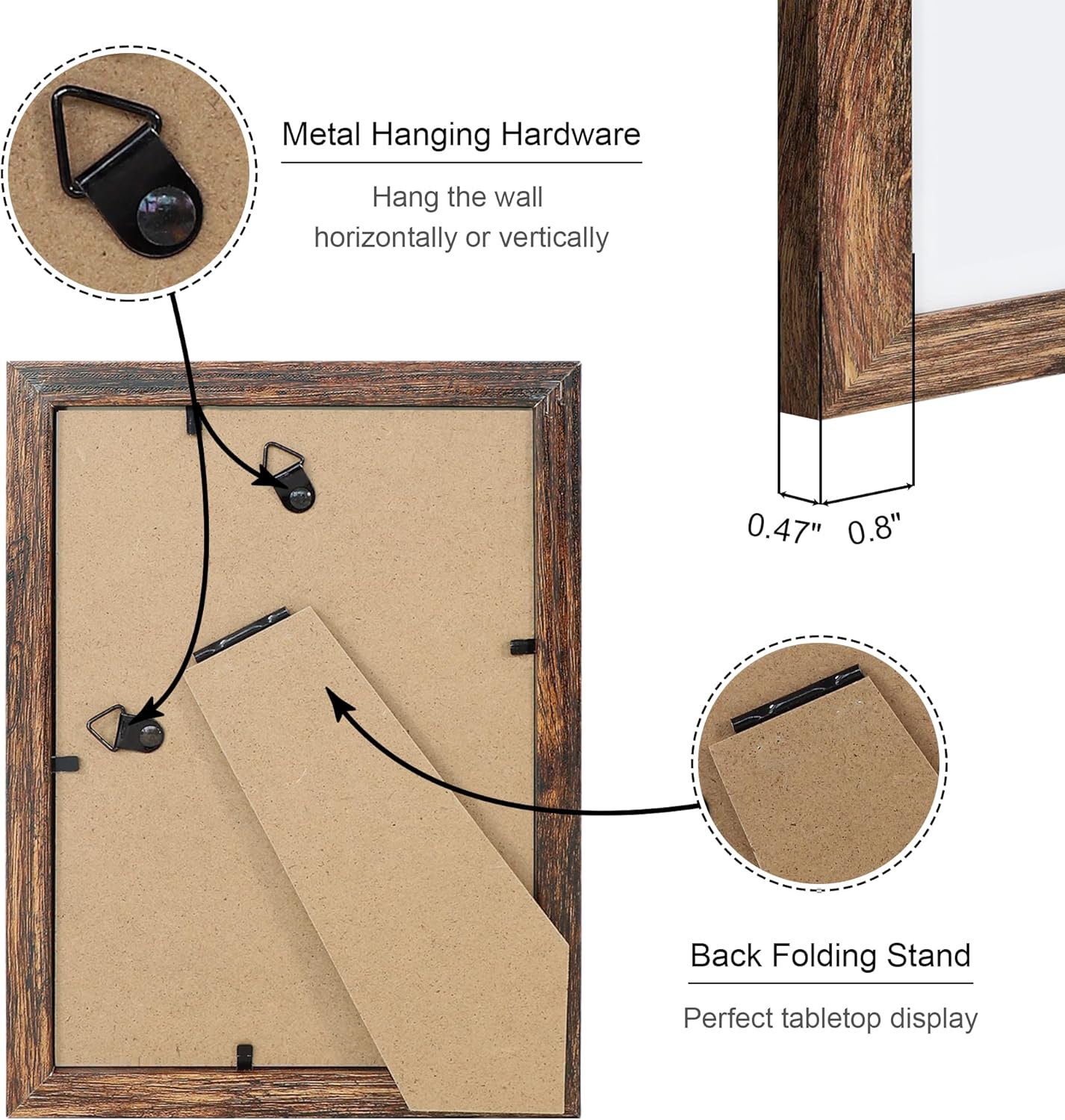 - Multiple Display:5 by 7 photo frames come with hanging hardware, which can be hung horizontally or vertically on the wall, or displayed on the tabletop through the stand