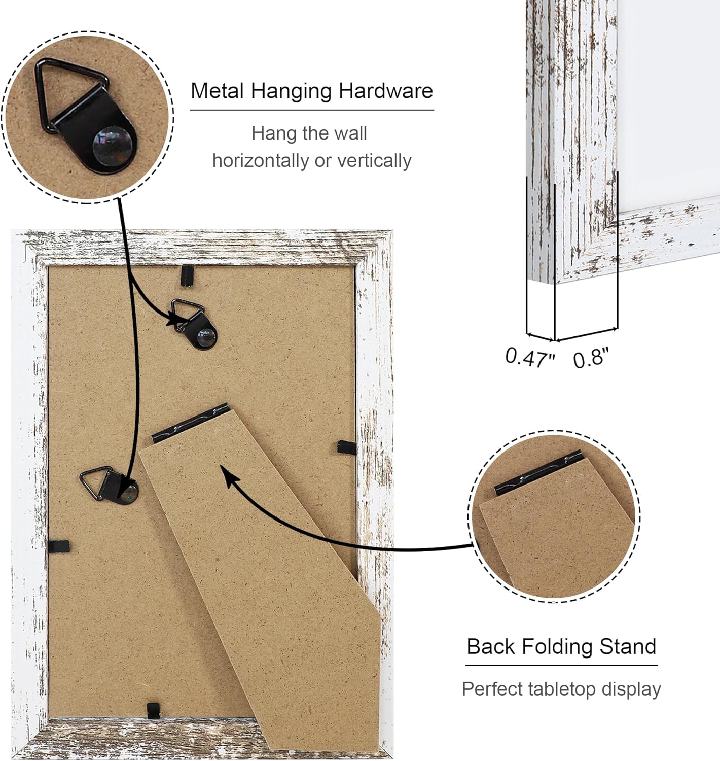 - Multiple Display:4 by 6 photo frames come with hanging hardware, which can be hung horizontally or vertically on the wall, or displayed on the tabletop through the stand