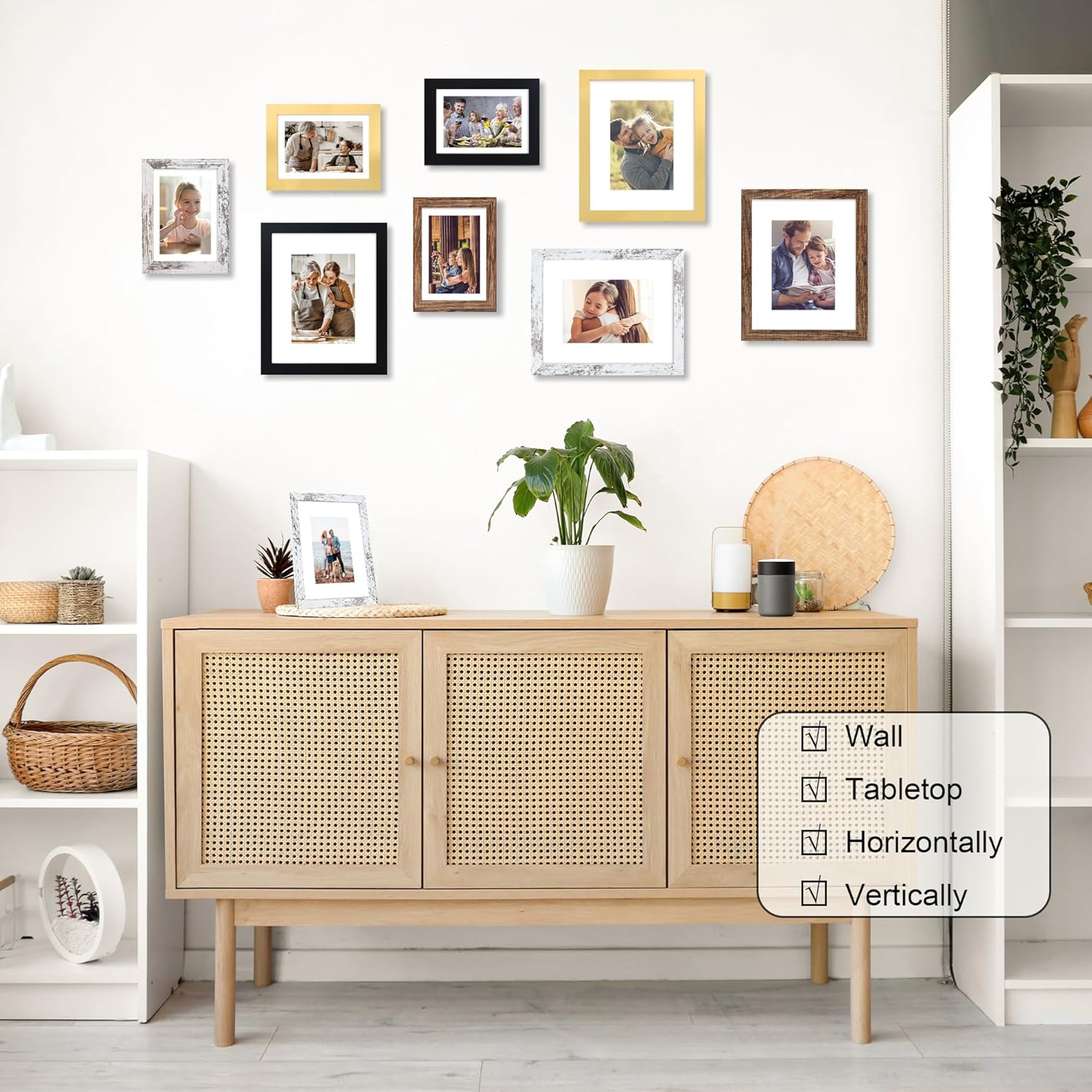- Multiple Display:5 by 7 photo frames come with hanging hardware, which can be hung horizontally or vertically on the wall, or displayed on the tabletop through the stand