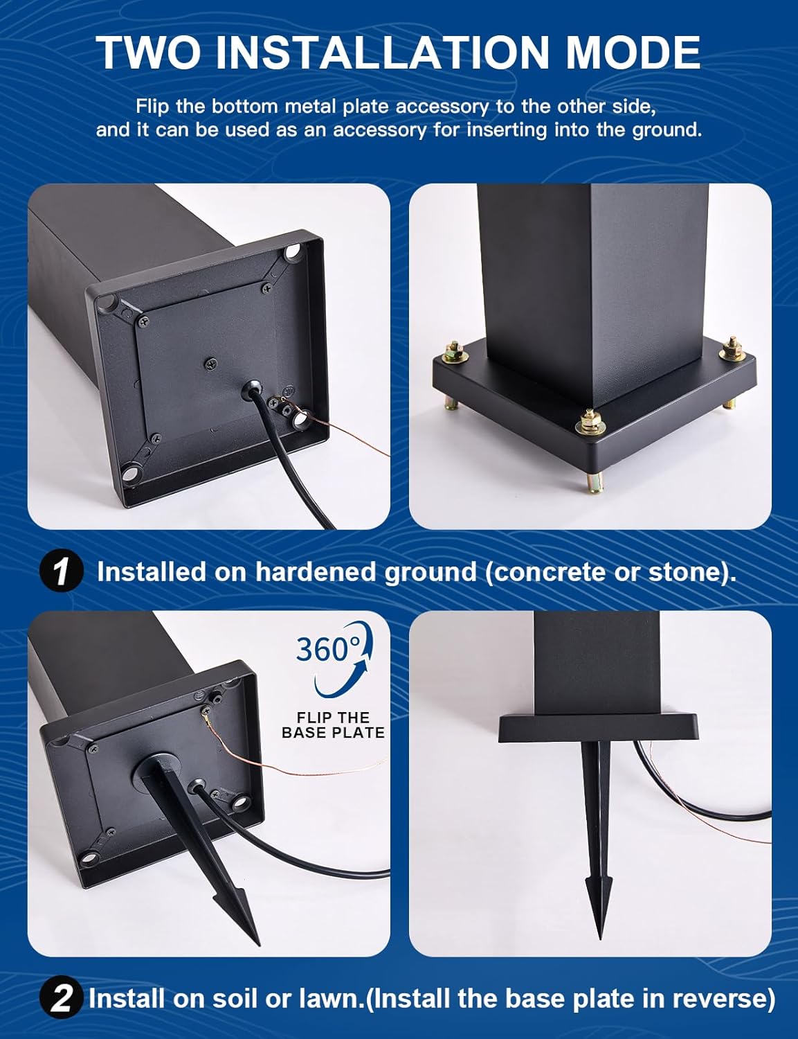 - đ©ă2 INSTALLATION OPTIONS & EASY TO INSTALLă:The path light provides two installation methods, which can be applied to most scenes. It can be fixed with bolts on hardened ground and spikes on soil or lawn. Both accessories are included in the package.