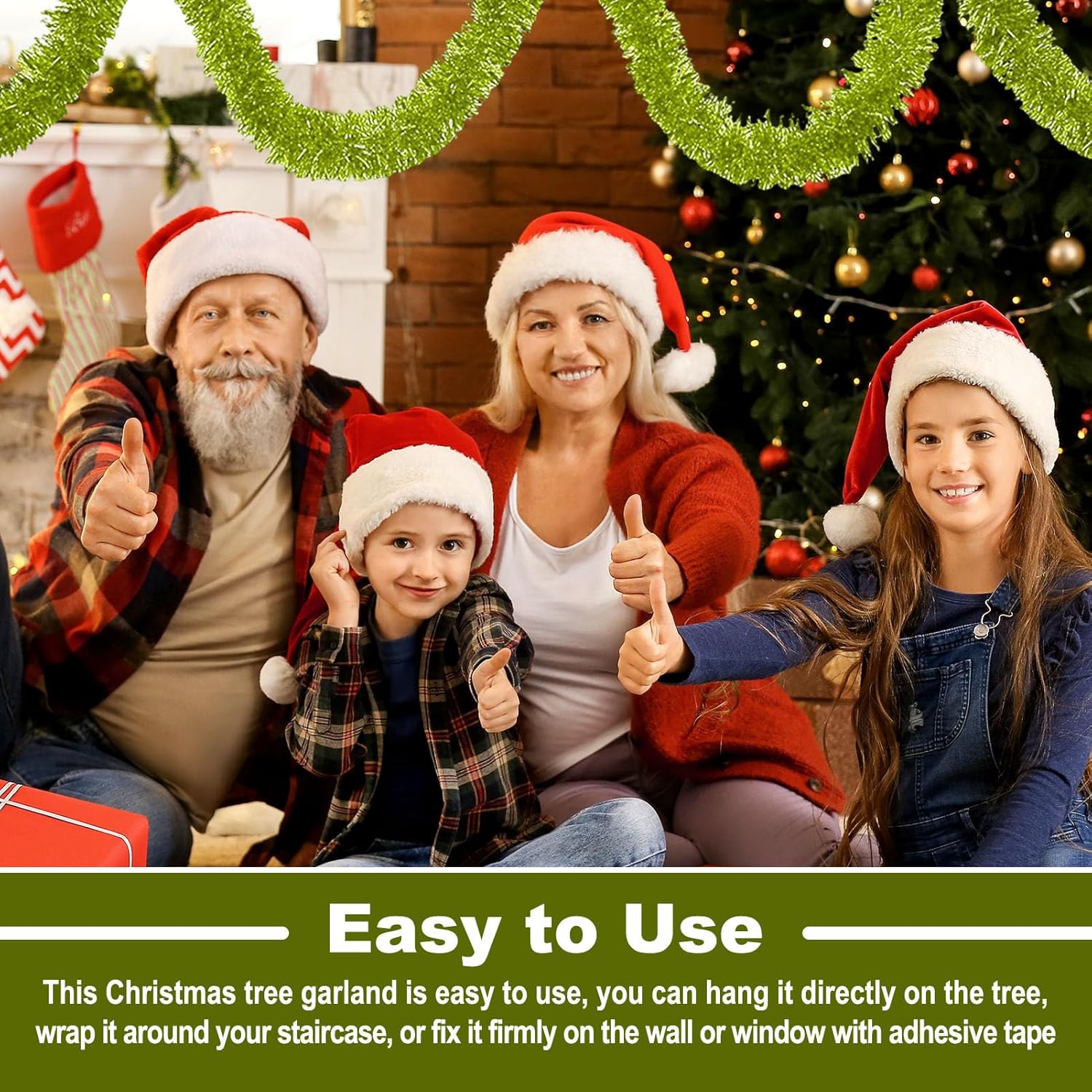 - Easy to Hang: Christmas tinsel garland include a soft, bendable wire inside, and easy to shape as different looks. You can also trim it into different sizes, twist them into various shapes as you like, or with the tape stick it on the wall, window, table, door, rail or any place you like, show the christmas glamour to make your party decoration for the home fun