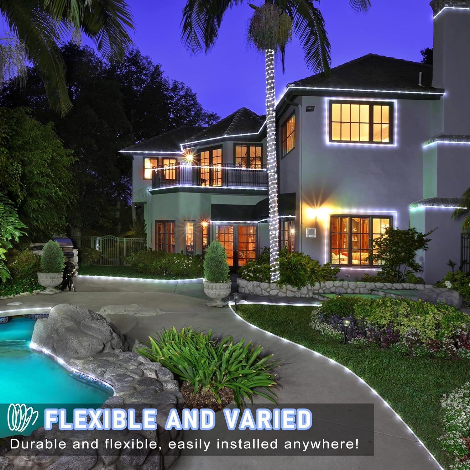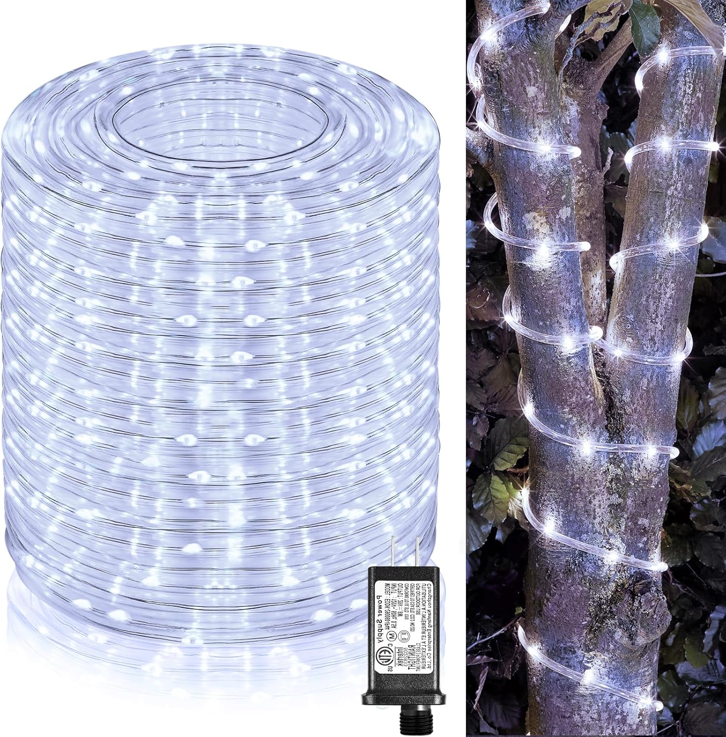 164FT Rope Lights Outdoor, 500 LED White Rope Lights Indoor Waterproof, 8 Modes Plug in Connectable String Lights for Outside Garden, Deck, Patio, Pool, Bedroom, Landscape, Party Decorations