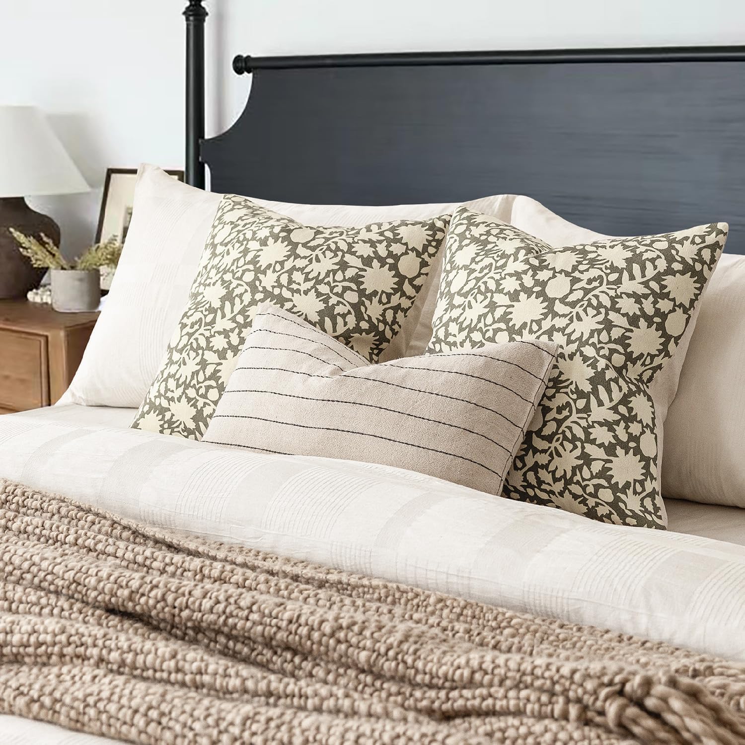 Foindtower Set of 2 Decorative Neutral Floral Throw Pillow Covers Accent Farmhouse Cushion Covers Boho Vintage Pillowcase for Couch Sofa Bedroom Living Room Home Decor Outdoor,24×24 Inch,Sage Green