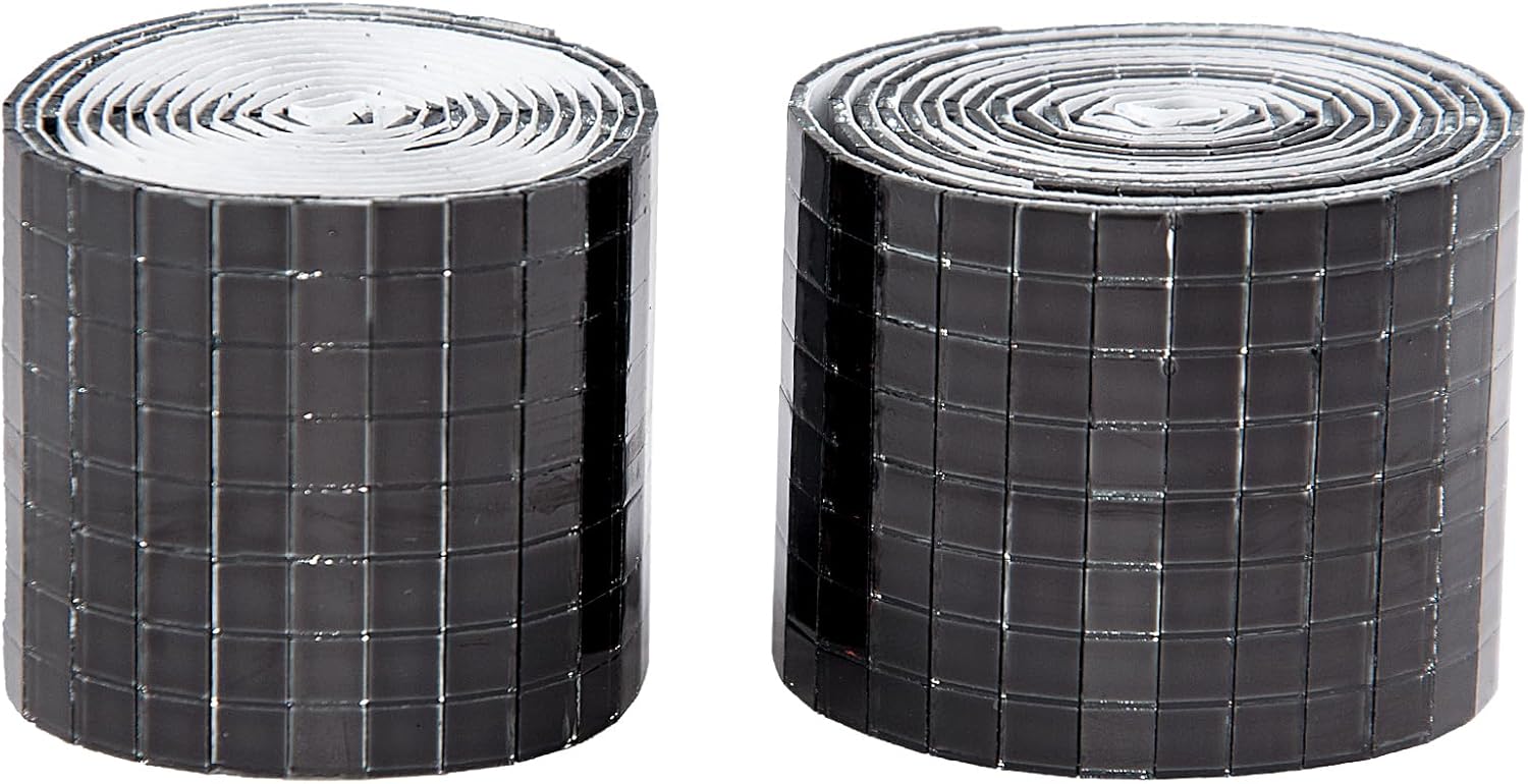 Self Adhesive Mosaic Tiles, 3200 Pieces Disco Ball Tiles, 5 x 5 mm Glass Mirror Mosaic Tiles, Square Mirror Tiles Sticker for DIY Vase, Art Collage, Photo Frames, Home Party 2 Rolls (Black)