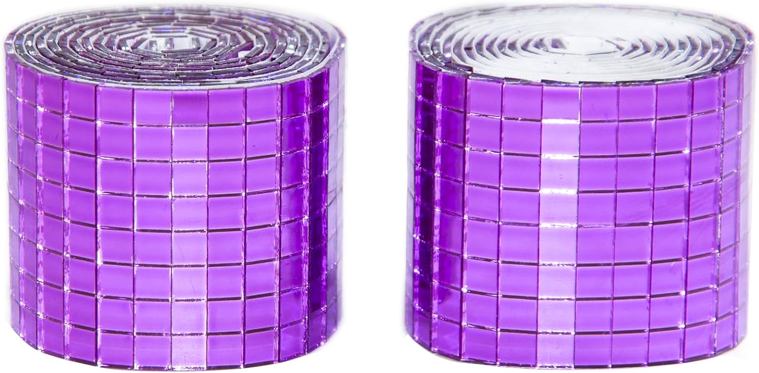 Self Adhesive Mosaic Tiles, 3200 Pieces Disco Ball Tiles, 5 x 5 mm Glass Mirror Mosaic Tiles, Square Mirror Tiles Sticker for DIY Vase, Art Collage, Photo Frames, Home Party 2 Rolls (Purple)