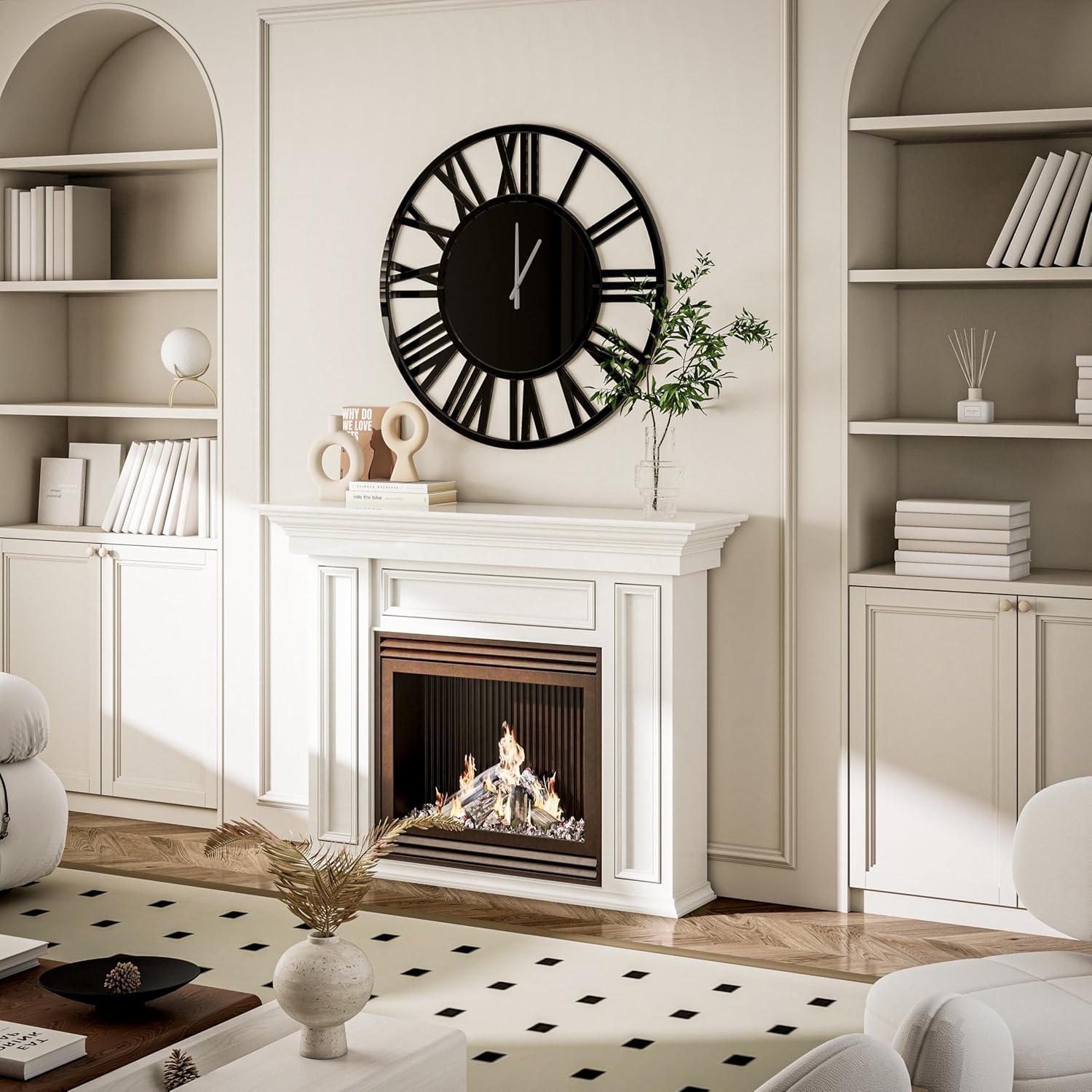 - 【MINIMALIST CRAFTSMANSHIP】The wall clock's design highlights clean aesthetics through its black mirror finish and distinctive Roman numeral dial. Featuring only hour and minute hands, the clock operates with complete silence - creating a tranquil atmosphere ideal for modern homes and work spaces.