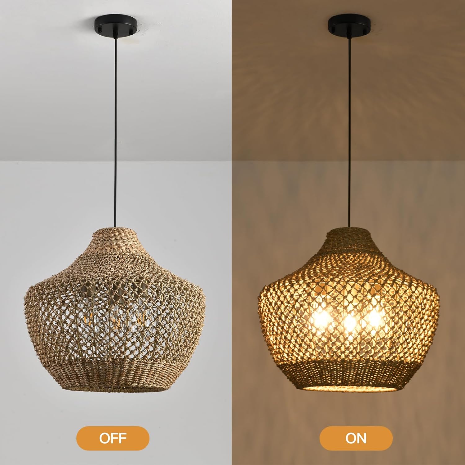 - Simple installation: This is a hand-woven rattan lamp; includes installation instructions and accessories required for installation; installation is very convenient; for safe and reliable installation; we recommend that you contact a professional electrician directly