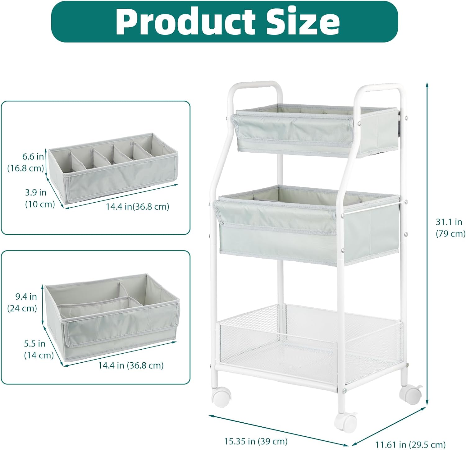 - Durable & Lightweight Design: Crafted with sturdy metal and fabric, this 3-tier rolling cart ensures long-lasting use and easy maneuverability, making it a reliable utility cart.