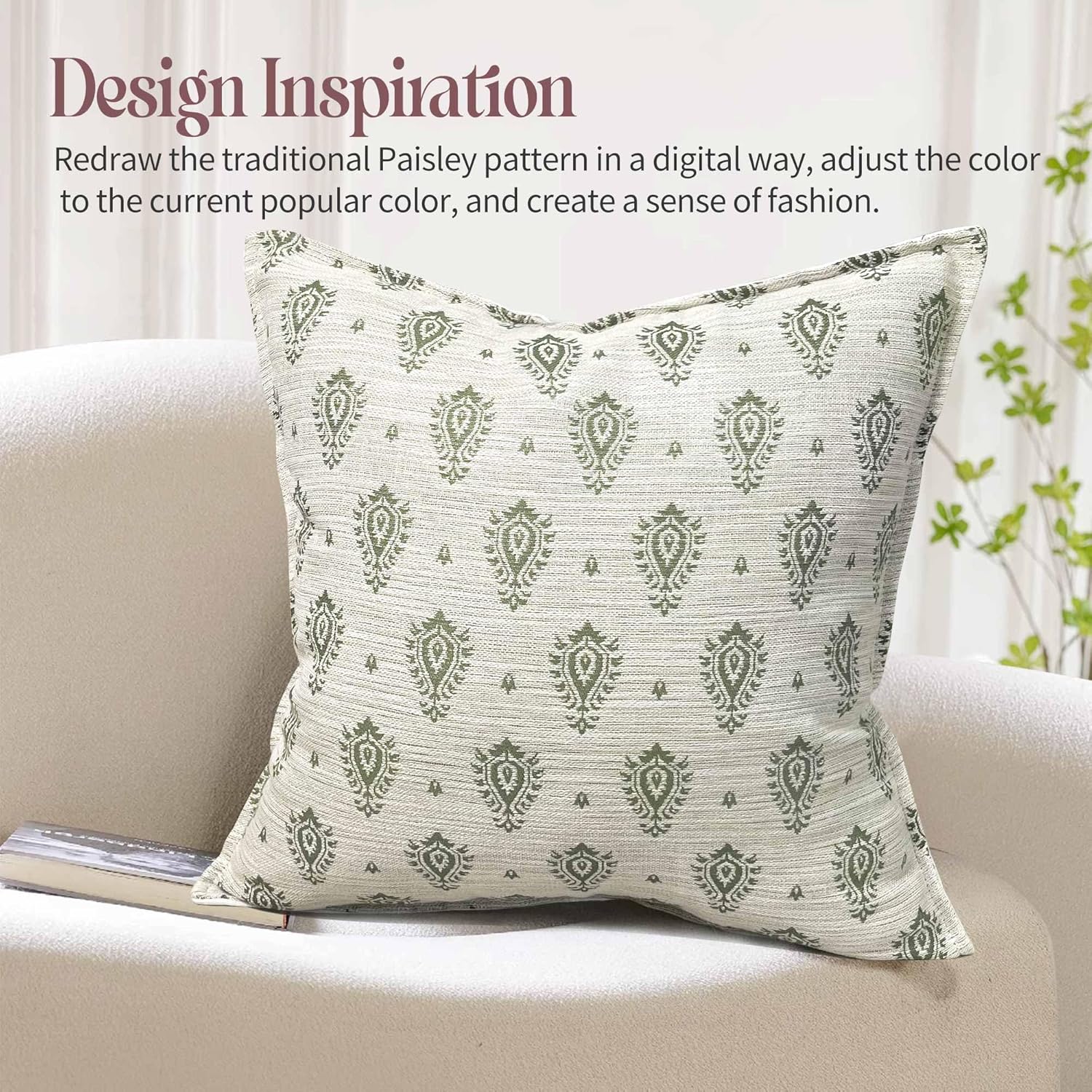 Floral Pillow Covers 20x20 Set of 2 Decorative Throw Pillow Covers Neutral Floral Paisley Farmhouse Pillow Covers for Sofa Couch Bed