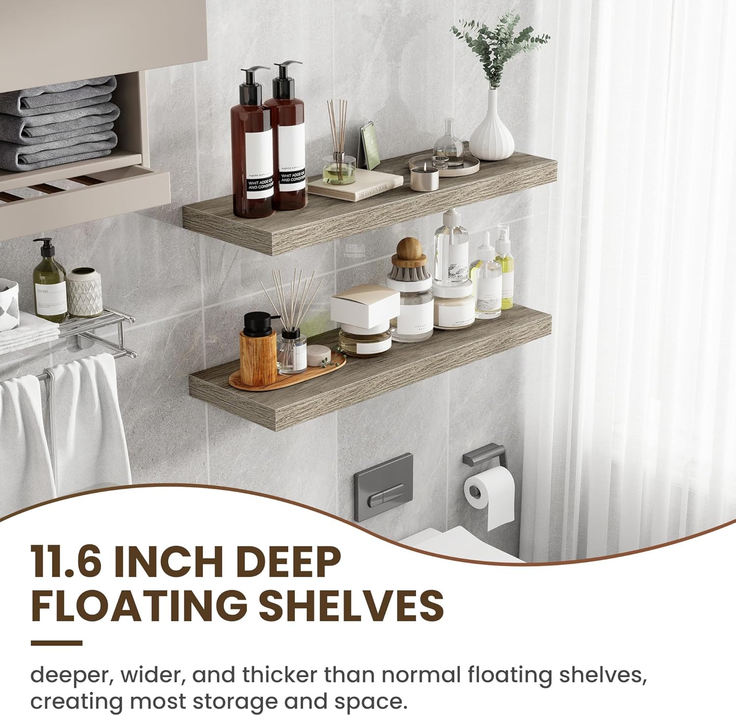 36 Inch Floating Shelves, 12 Inch Deep Floating Shelves for Wall, Floating Shelf with Invisible Brackets, Deep Shelves for Bathroom, Bedroom, Living Room, 2 Pack, Vintage Gray Oak