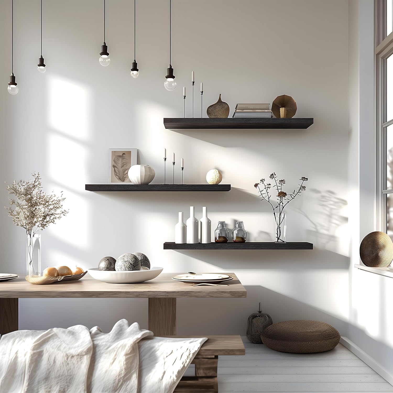 - STORAGE FLOATING SHELVES - Our floating shelves provide extra storage space, they can serve as home storage shelves, makes a nice addition and maximize the role of your wall.