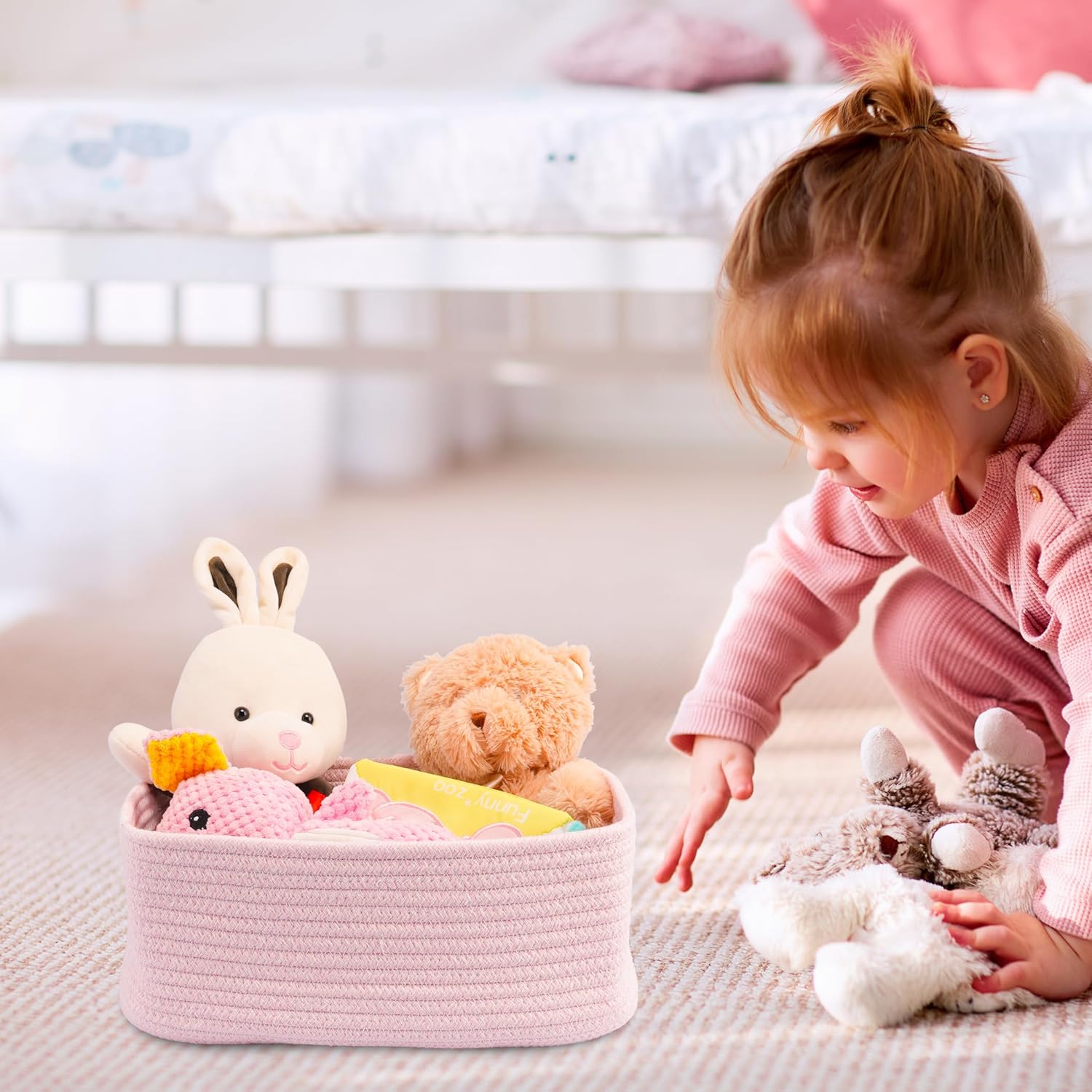Small Woven Storage Baskets 13“X9”X5“ Decorative Rope Bins for Organizing Shelves, Closets, and Toys, Empty Gift Baskets, Cute Organizer Basket for Home and Office (pink, Large)