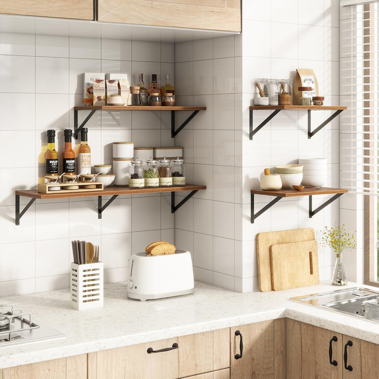 - ăFARMHOUSE RUSTIC WALL SHELFăThese floating shelves are made of premium engineered wood board and visible triangular bracket. The rustic wooden grain surface add character and warmth to any modern or traditional interior with these deep floating shelves, contrast shelves at staggering heights on the wall or mount side-by-side or in the corner for a clean streamlined look.